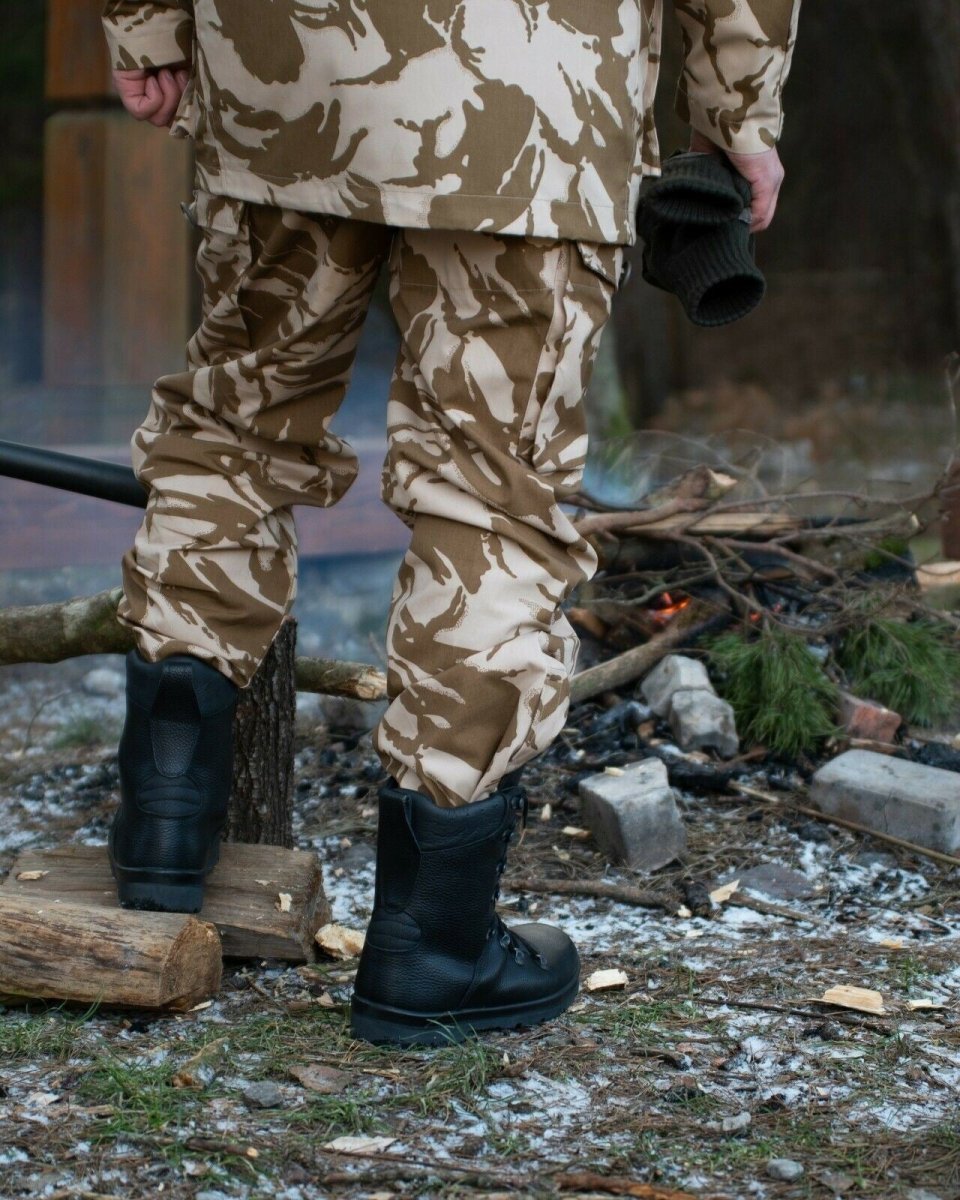 Vi presenterar de robusta brittiska militära lastbyxorna! Dessa byxor är byggda tuffa för utmanande situationer. Med slitstarkt ökenkamouflagetyg är de redo för alla äventyr. Du hittar gott om förvaring med last- och snedstreckade fickor, perfekta för att hålla dina nödvändigheter säkra på resande fot. Dessutom har dessa fickor säkra stängningar för att säkerställa att inget faller ut.