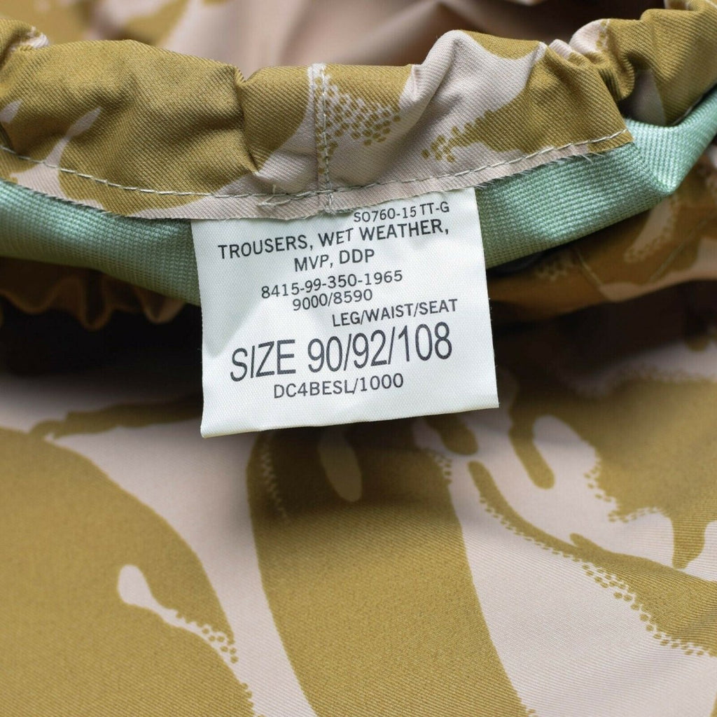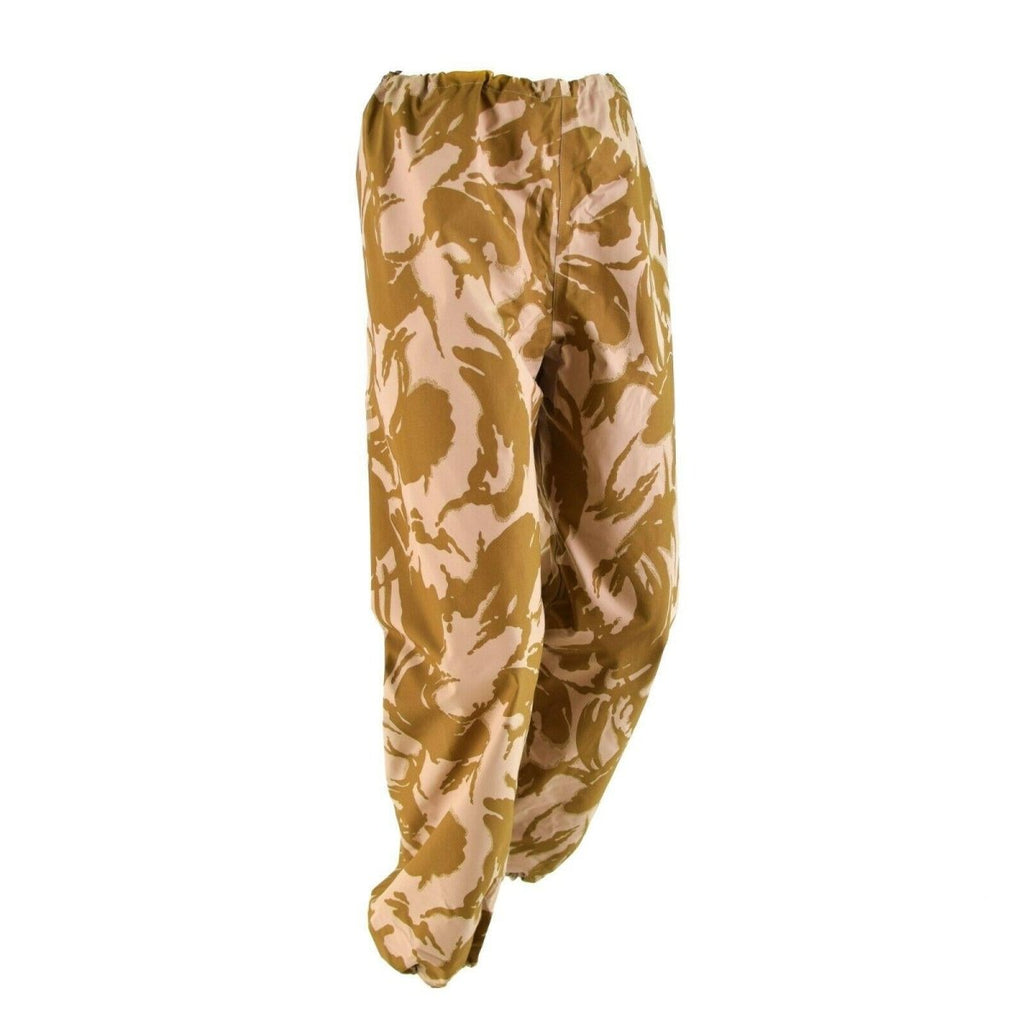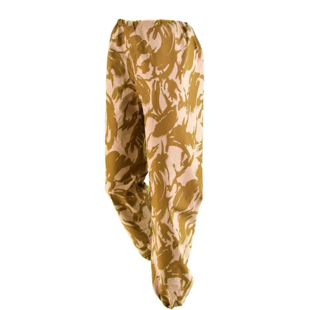 De brittiska militära våta väderbyxorna i ökenkamouflage är utformade för att ge skydd mot våta väderförhållanden i ökenmiljöer. De är gjorda av vattentätt material och har en justerbar midja och bottnar för att säkerställa en bekväm passform. Byxorna är utformade för att bäras över andra kläder och är kompatibla med olika typer av militära redskap. De är ett pålitligt val för militär personal som arbetar under hårda väderförhållanden.