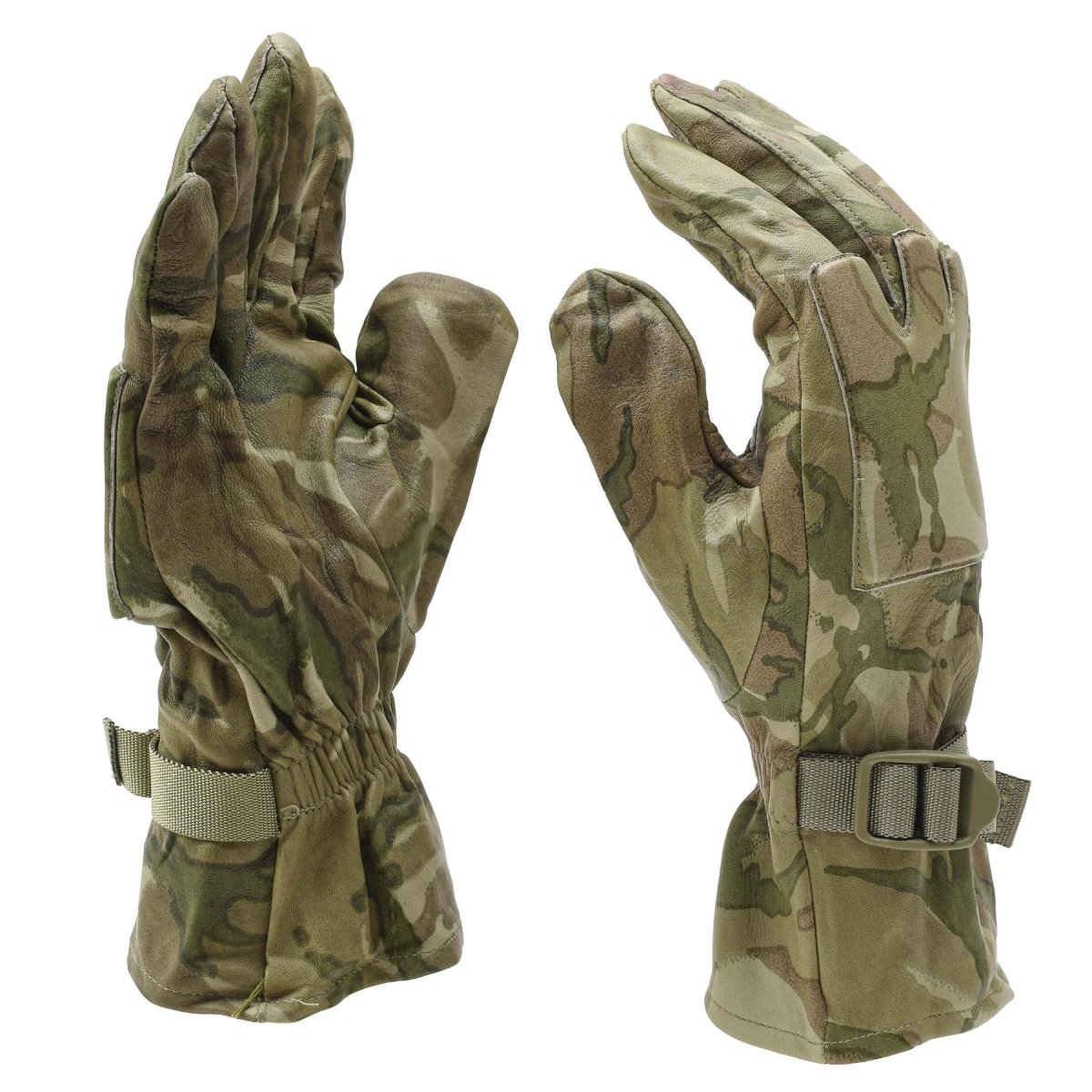 De äkta brittiska taktiska läderhandskar i MTP -kamouflage är en typ av militära överskottshandskar utformade för varma väderförhållanden. De är gjorda av lätt läder. Handskarna har en taktisk design som är lämplig för militär personal och brottsbekämpning.
