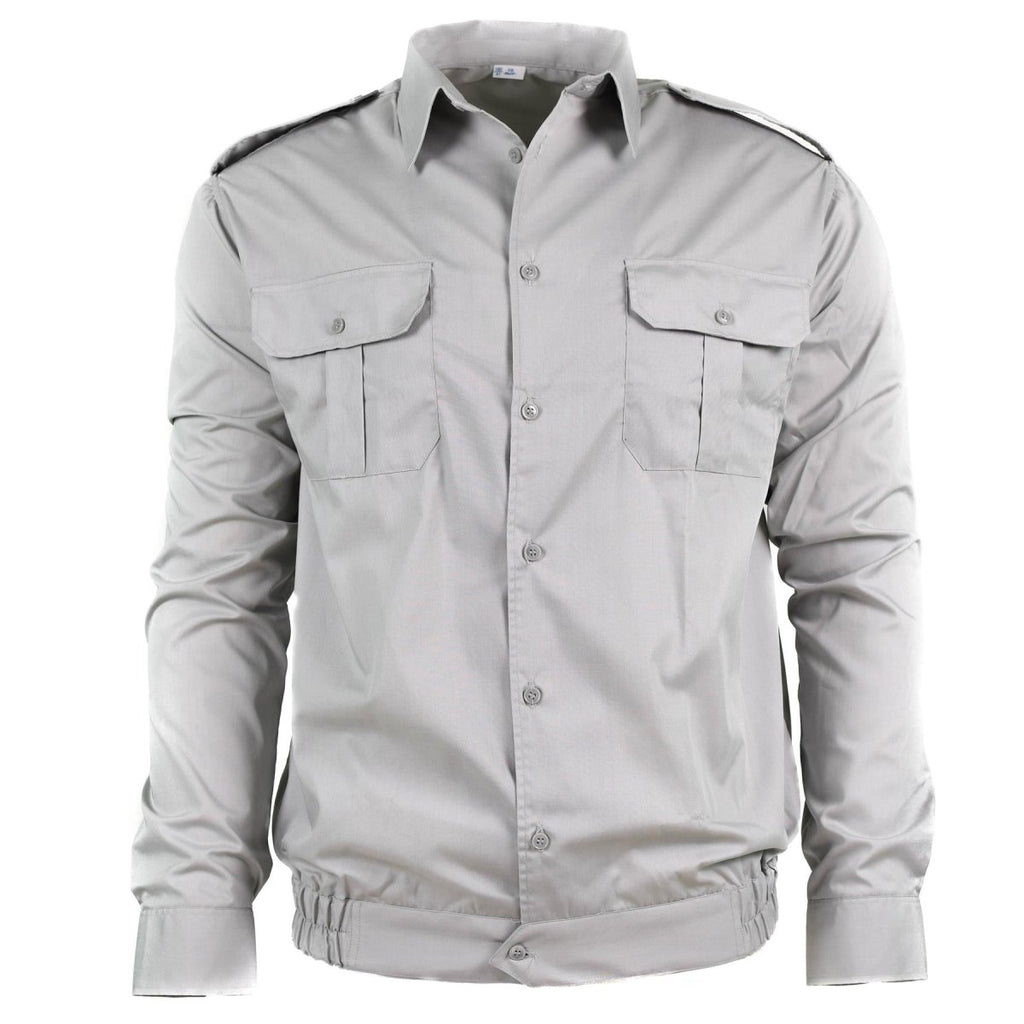 - Med en resår i midjan säkerställer denna grå militärskjorta en säker och bekväm passform. Tillåter enkel rörelse under olika aktiviteter. Oavsett om du är i tjänst eller ägnar dig åt utomhusuppgifter, ger den elastiska midjan flexibilitet och komfort.