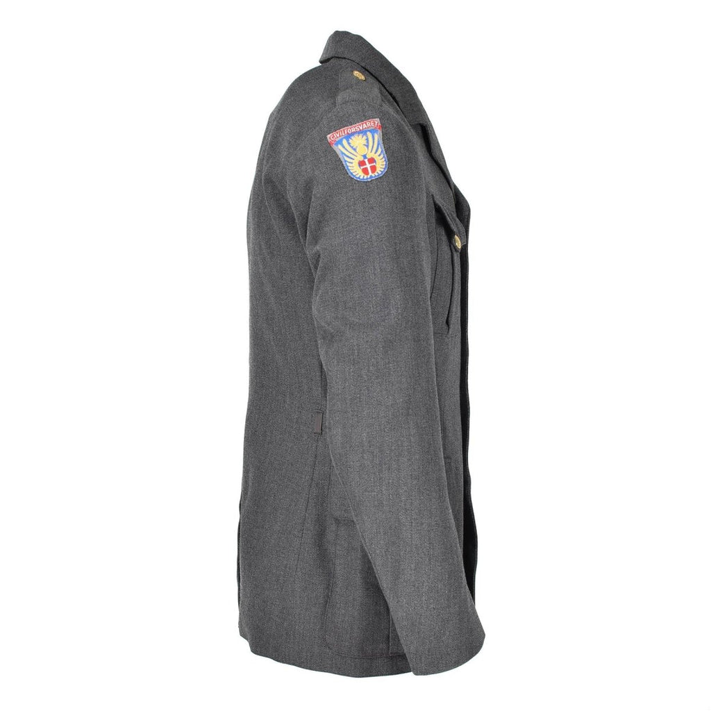 Vi presenterar den danska civilförsvarsstyrkans militära uniformsjacka, en distinkt pjäs som medlemmar i denna frivilligorganisation bär. Dessa engagerade personer stödjer aktivt den danska beredskapsmyndigheten under nödsituationer och katastrofer.