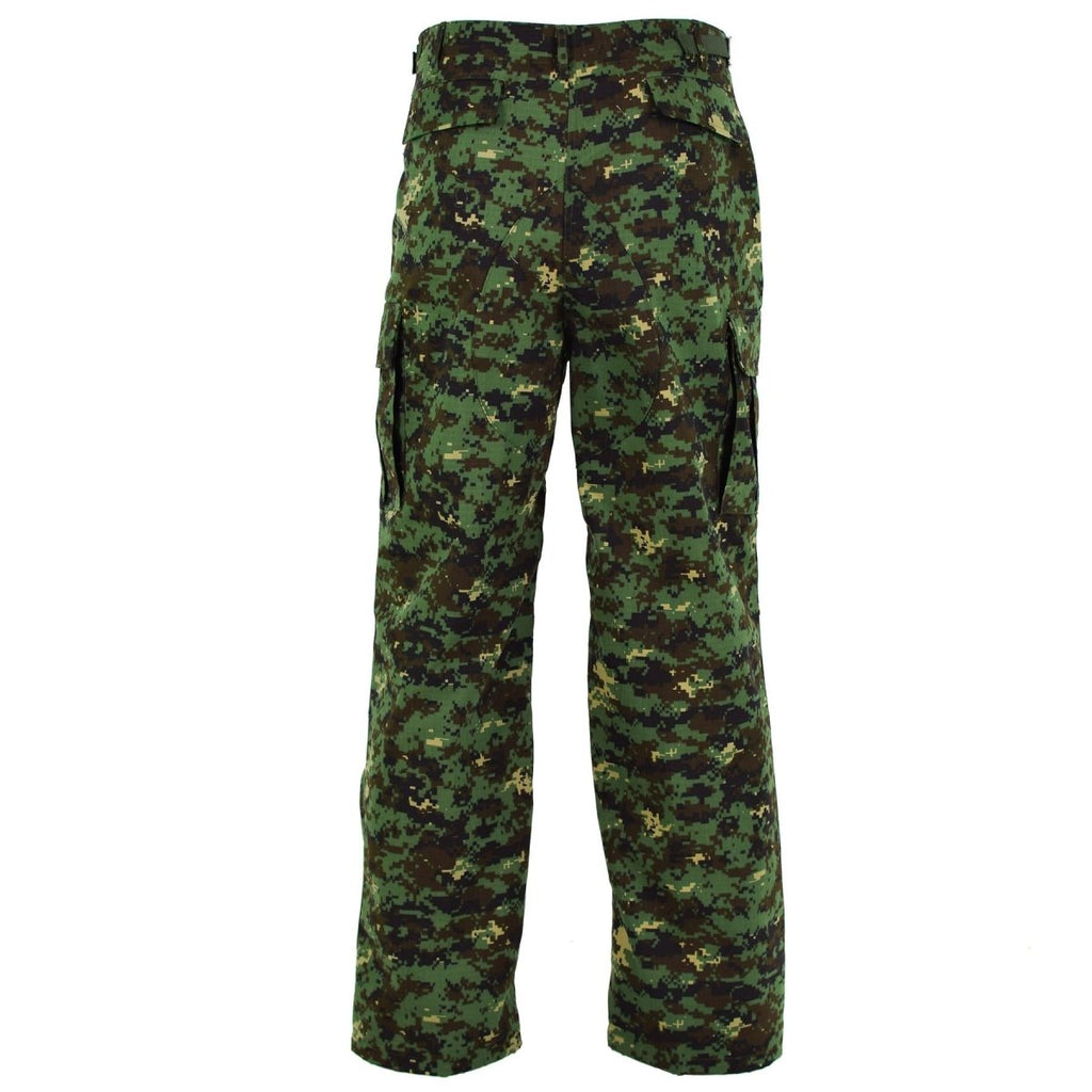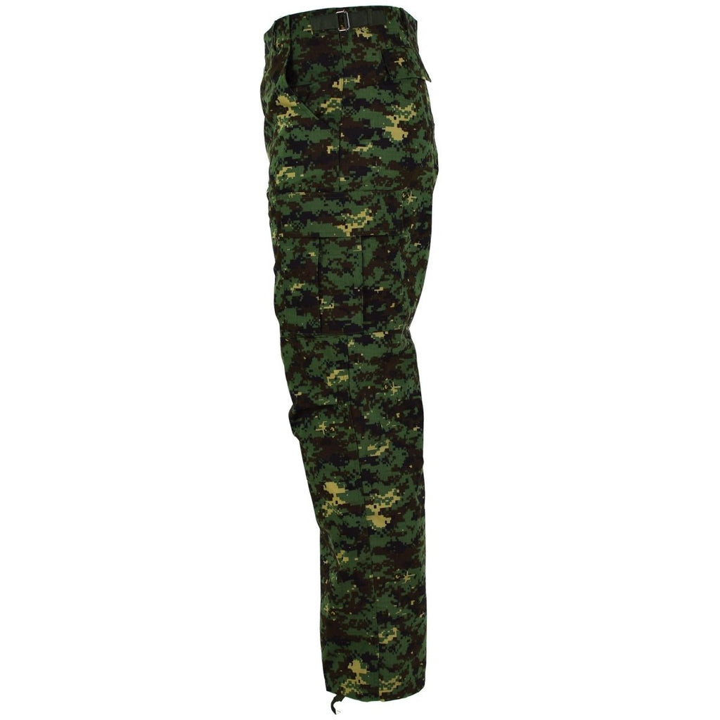 - Därför justerbar midja och botten: Anpassa passformen med justerbar midja och nederkant för komfort och funktionalitet. Ripstop Hållbarhet: Byggd för att motstå revor och slitage, erbjuder motståndskraft i utmanande miljöer. Förstärkta knän: Extra skydd för tuff terräng och krävande aktiviteter. Material och mönster: Tillverkad av en polybomullsblandning med djungelkamouflage för styrka och effektiv döljande.