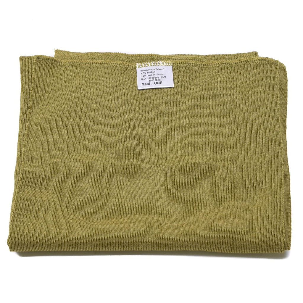 Vi presenterar den mångsidiga khaki-färgade halsduken, tillverkad av en blandning av merinoull och bomull. Denna militära överskottsvara från den holländska armén är äkta och redo för action.