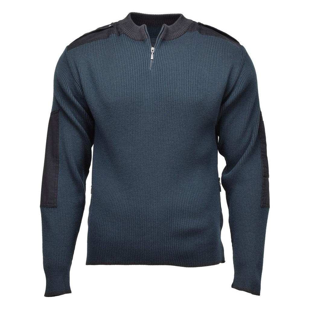 En äkta holländsk militärtröja ribbstickad blå tröja för kallt väder är en typ av tröja som är designad för att hålla dig varm i kalla väderförhållanden. Den har vanligtvis en ribbstickad textur, vilket gör tröjan stretchig och flexibel, och är gjord av ett ullblandningsmaterial.