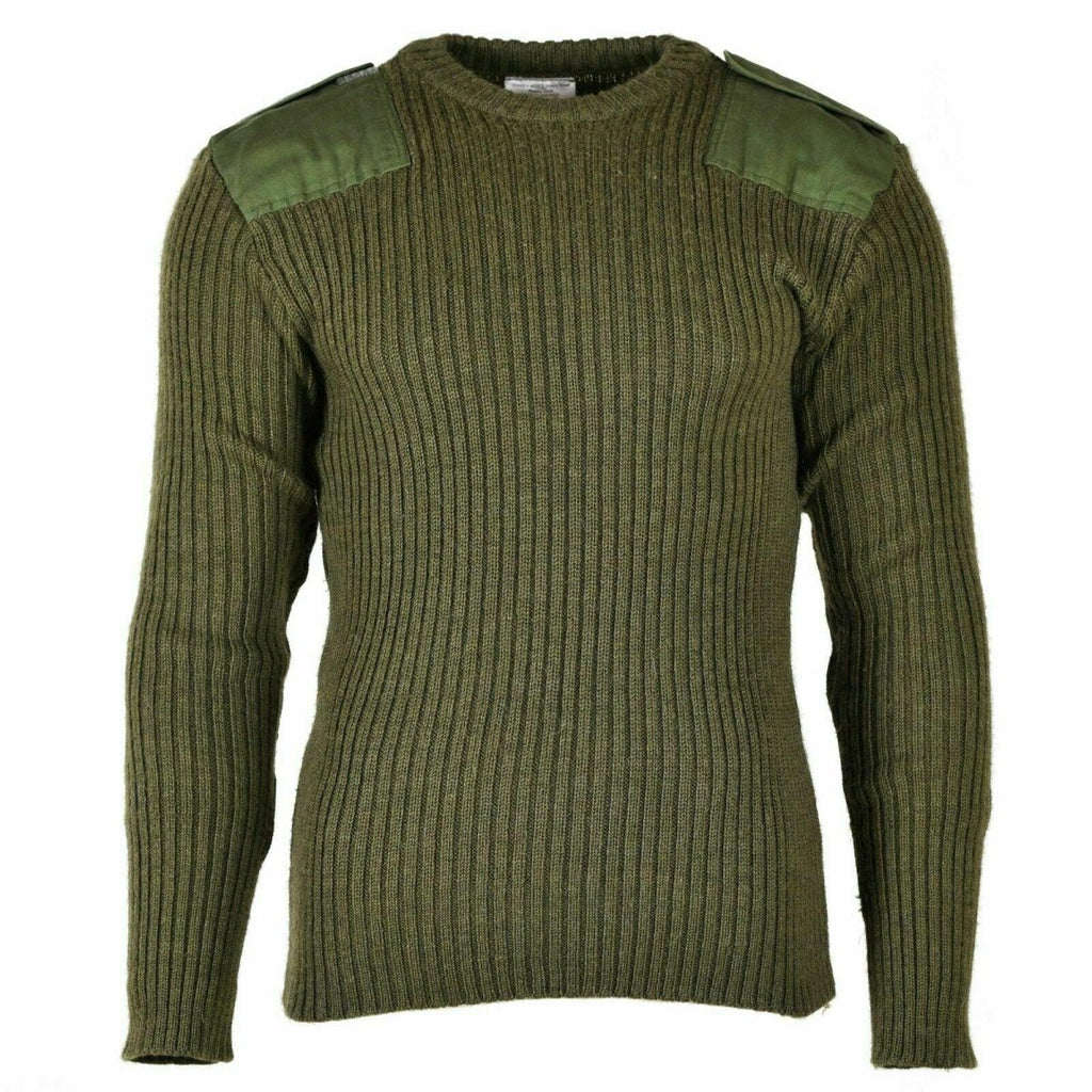 Sammantaget är British Military Wool Sweater ett högkvalitativt plagg som är perfekt för alla som älskar att vara utomhus och behöver en slitstark och pålitlig tröja för att hålla dem varma och skyddade. Med sitt ullmaterial, olivfärgade tyg och förstärkta armbågar och axlar kommer denna tröja garanterat att ge många år av användning och njutning.