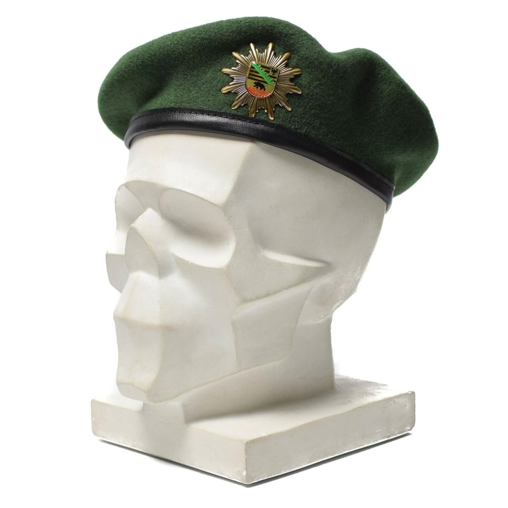 Den tyska militärpolisens baskerhatt bärs vanligtvis av medlemmar av den tyska polisstyrkan. Den är gjord av grönt tyg och har en polisinsignier på framsidan, som används för att identifiera bäraren som medlem av brottsbekämpning. Denna typ av hatt är vanligtvis tillverkad av högkvalitativa material och är utformad för att ge komfort och skydd för bäraren, vilket gör det till ett funktionellt och praktiskt tillbehör för poliser på tjänst.