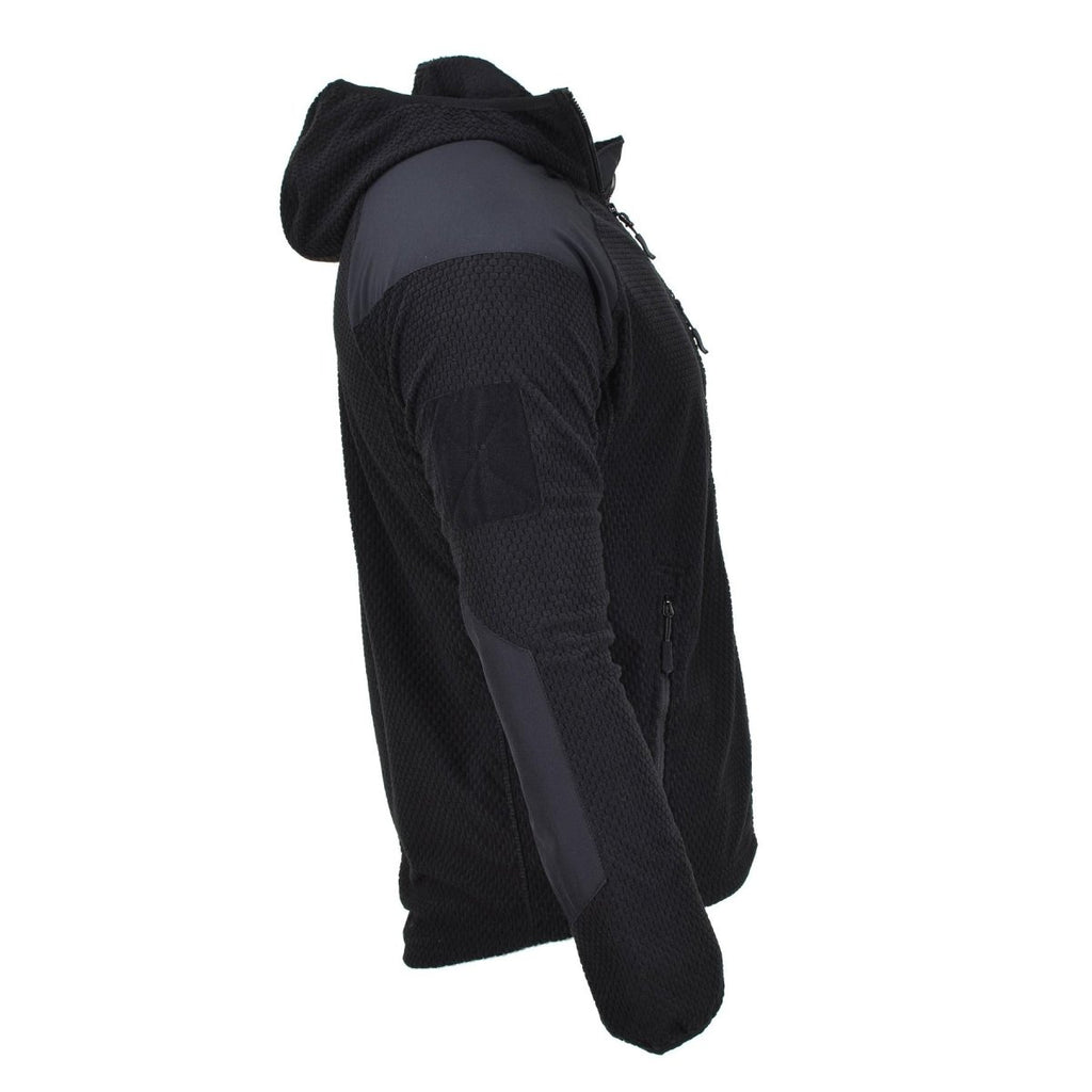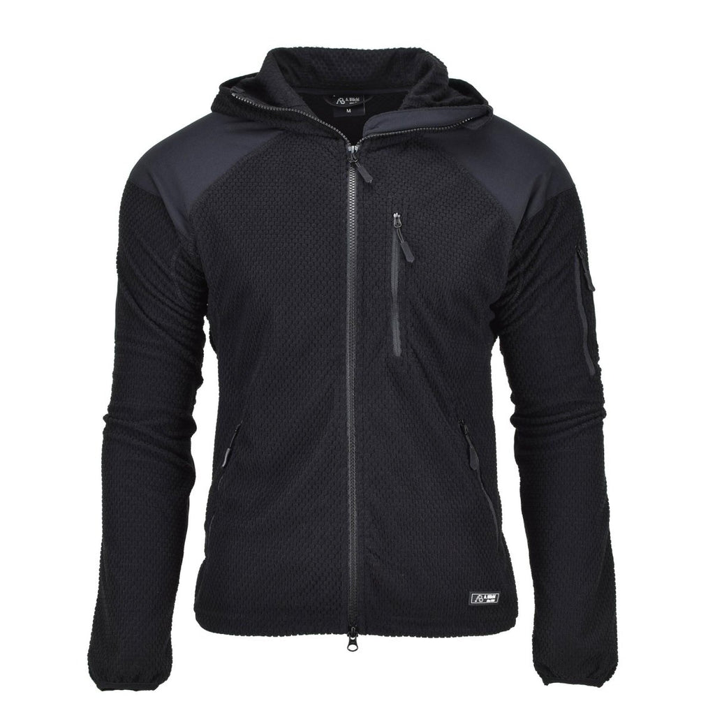 Denna A. Blochl fleecejacka med termisk huva i militärstil ger ett viktigt skydd mot kylan. Med en dragkedja med hakskydd, en åtsittande huva, en justerbar dragsko i fållen, elastiska muddar, en stående krage och förstärkta armbågar, håller du dig varm och skyddad under alla förhållanden.