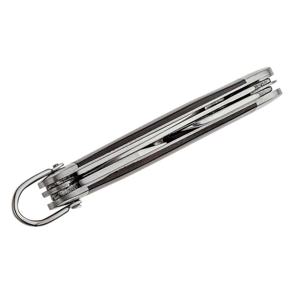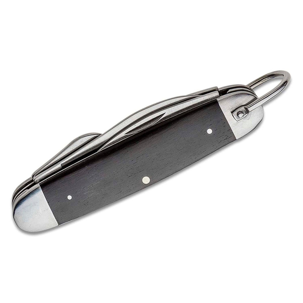BOKER Classic Pocket Knife Steel är inte bara en kniv; det är ett mångsidigt multiverktyg utformat för att förenkla dina vardagliga uppgifter. Tillverkad med precision och funktionalitet i åtanke, detta underverk i fickstorlek är en oumbärlig följeslagare för olika situationer. Högkvalitativt rostfritt stål: Bladen, flasköppnaren och burköppnaren är alla tillverkade av hållbart 440 rostfritt stål. Detta materialval säkerställer exceptionell livslängd, skärpa och tillförlitlighet. Robusta beslag: Beslagen är konstruerade av stål, vilket förbättrar verktygets totala hållbarhet och styrka. Räkna med att den tål hård användning utan att kompromissa med prestanda. Lanyard-ring: Den inbyggda lanyard-ringen är ett genomtänkt tillägg som gör att du kan fästa den på en nyckelring eller rem för enkel och bekväm bäring. Du behöver aldrig mer söka efter ditt betrodda multiverktyg. Handtag av äkta rosenträ: Handtaget i äkta rosenträ ger inte bara en touch av elegans utan erbjuder också ett bekvämt och säkert grepp. Dess rika, naturliga skönhet gör den till en framstående i din samling. Praktisk klassisk fickknivsdesign: Denna multiverktygsdesign är intuitiv och praktisk. Oavsett om du behöver klippa, öppna eller utföra andra vardagliga uppgifter, är den utrustad för att hantera dem alla med lätthet.