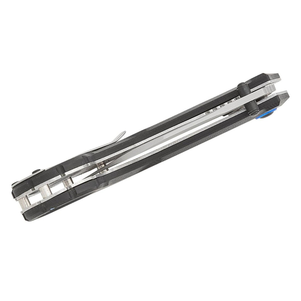 - De G10 handtag känns solid och säker i handen. Strukturerade detaljer förbättrar greppet även i våta eller stressiga situationer. Blå accentlinjer ger en touch av modern stil, vilket visar att funktion och design kan fungera tillsammans. De liner lås håller bladet stadigt under användning, medan fingerring ger stabilitet och snabb hantering.