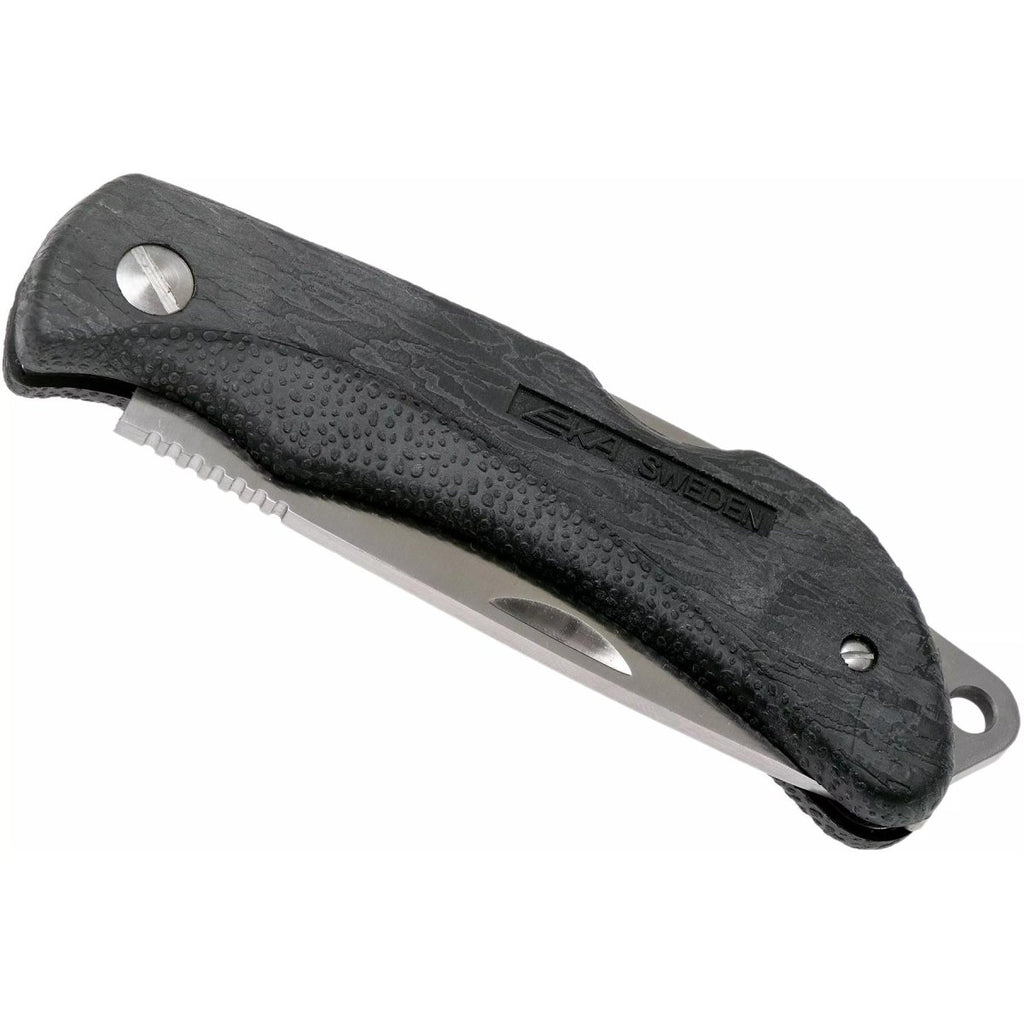 - Kompakt men ändå robust, den EKA fällkniv kombinerar skandinaviskt hantverk med praktisk design. Dess släpppunktsblad, ergonomiska handtag och slitstarka mantel gör den till en pålitlig följeslagare för alla situationer.