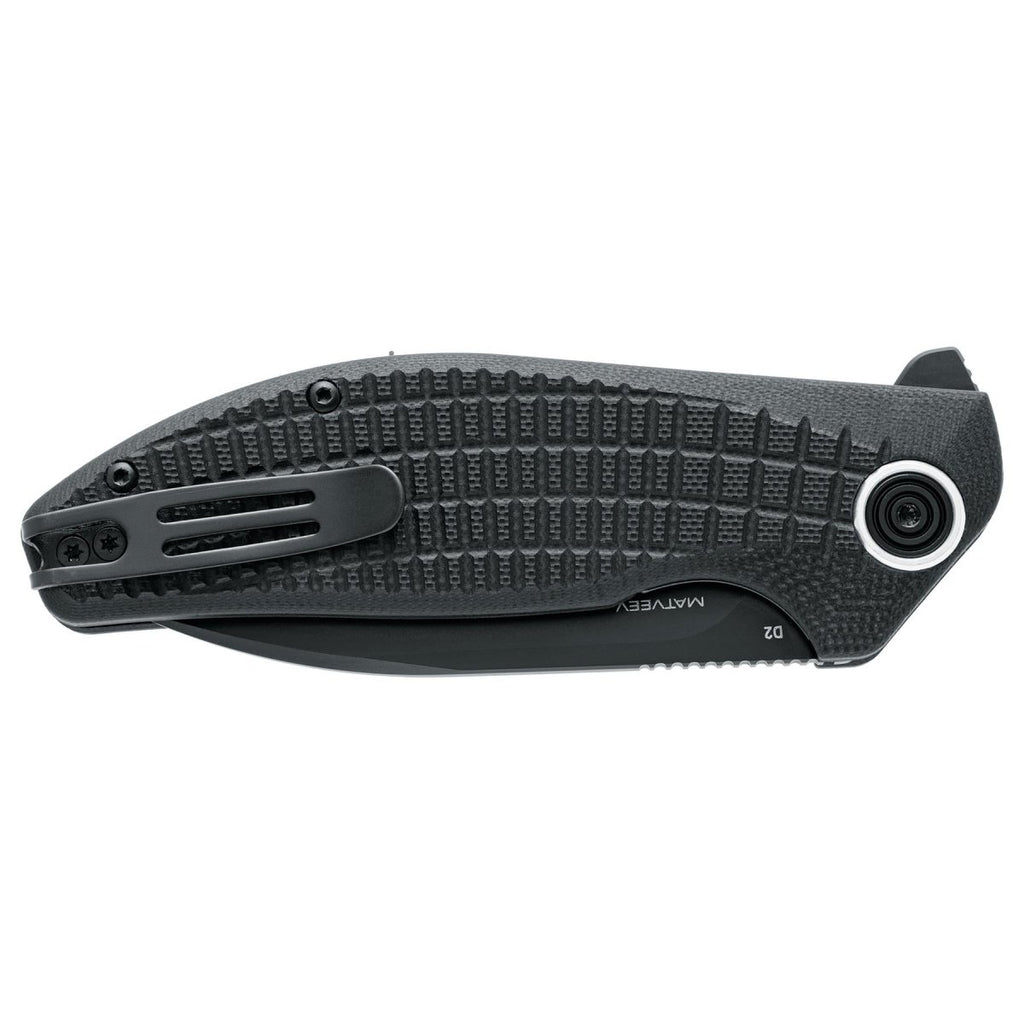 - A robust fickklämma behåller kniven tillgängligt och säkert förvarat när den inte används. Dess modern design förstärker visuellt tilltalande medan robust konstruktion garanterar hållbarhet under tuffa förhållanden. Denna kniv är byggd för tål regelbunden användning utan att kompromissa tillförlitlighet eller stil.