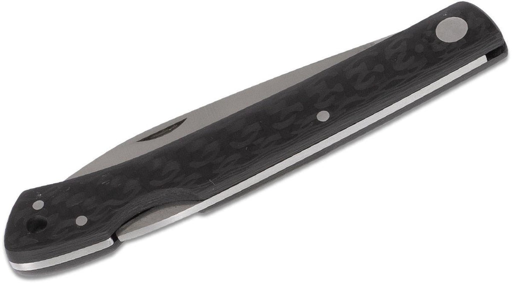 - De kolfiberhandtag ger en starkt men ändå lätt grepp. Dess ergonomiska form säkerställer komfort och minskar handtrötthet vid långvarig användning. Handtaget lägger till hållbarhet utan att ge avkall på bärbarheten, vilket gör kniven lätt att bära vart du än går.