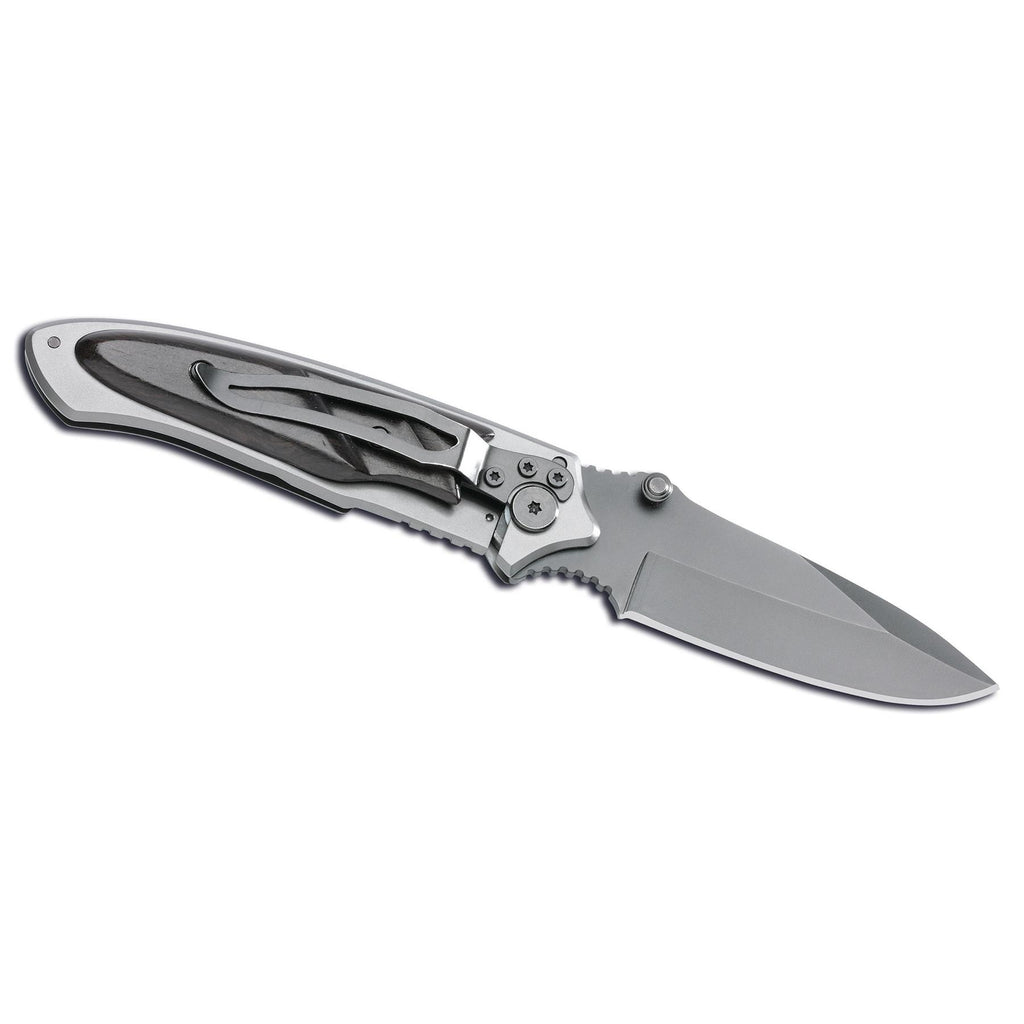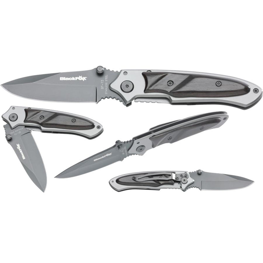 The BlackFox series is a line of pocket knives manufactured by FoxKnives, a well-known Italian knife brand. The BF-73 model is a pocket knife from this series with a number of impressive specifications. The blade is made from 440 stainless steel with a hardness of HRC 55-57, and is coated with a titanium coating for added durability. The handle is made from black sandal wood and 420 stainless steel, providing both durability and a stylish look. The clip is also made from stainless steel 420J2B for a secure carry. The blade length measures at 8 cm / 3.15" with an overall length of 19.5 cm / 7.68". The blade thickness is 3 mm / 0.12" and it weighs 105 gr / 3.70 oz. The knife is manufactured in Italy, ensuring high quality standards.