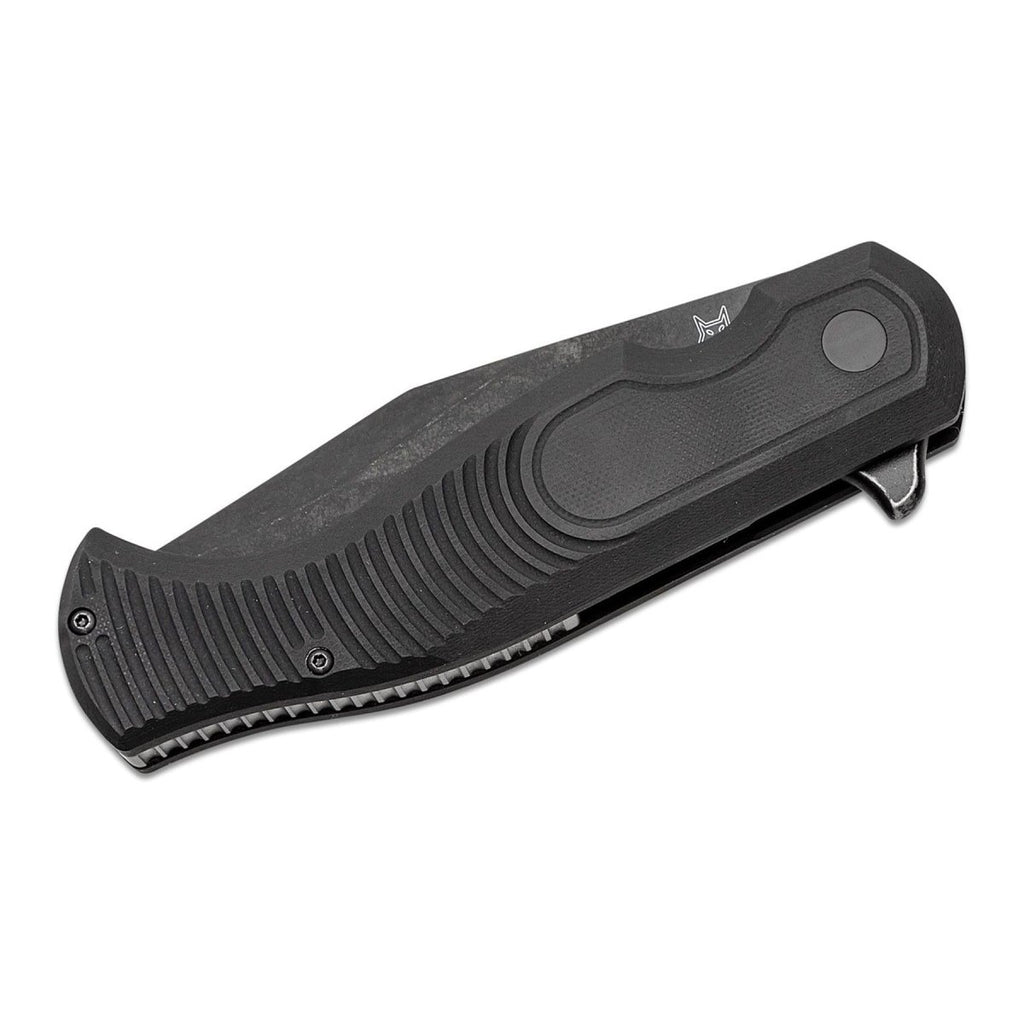 - Dess höghastighetsblad i D2 stål ger extrem hårdhet och hållbarhet. Bladet förblir skarpt genom hård användning och motstår slitage och korrosion. Du kan lita på att den skär rent och effektivt varje gång. De matt svart finish ger kniven en djärv, taktisk look samtidigt som den skyddar den från repor.
