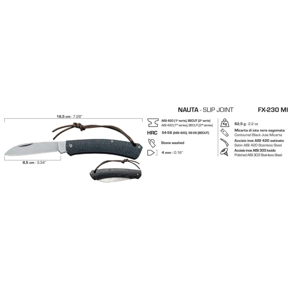 De Fox Knives NAUTA fällkniv levererar kompakt kraft, tillförlitlighet och taktisk precision i en lätt design. Dess 420C blad i rostfritt stål erbjuder exceptionella seghet, korrosionsbeständighet och skärpa. Du kan lita på det för utomhusäventyr, camping, vandring och dagliga sysslor.
