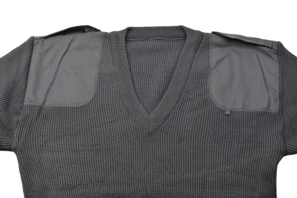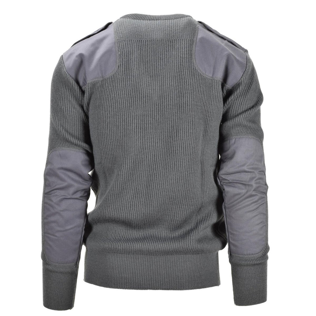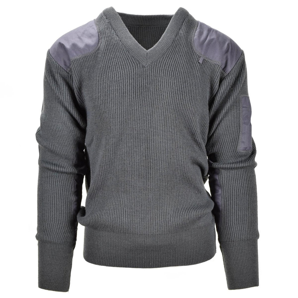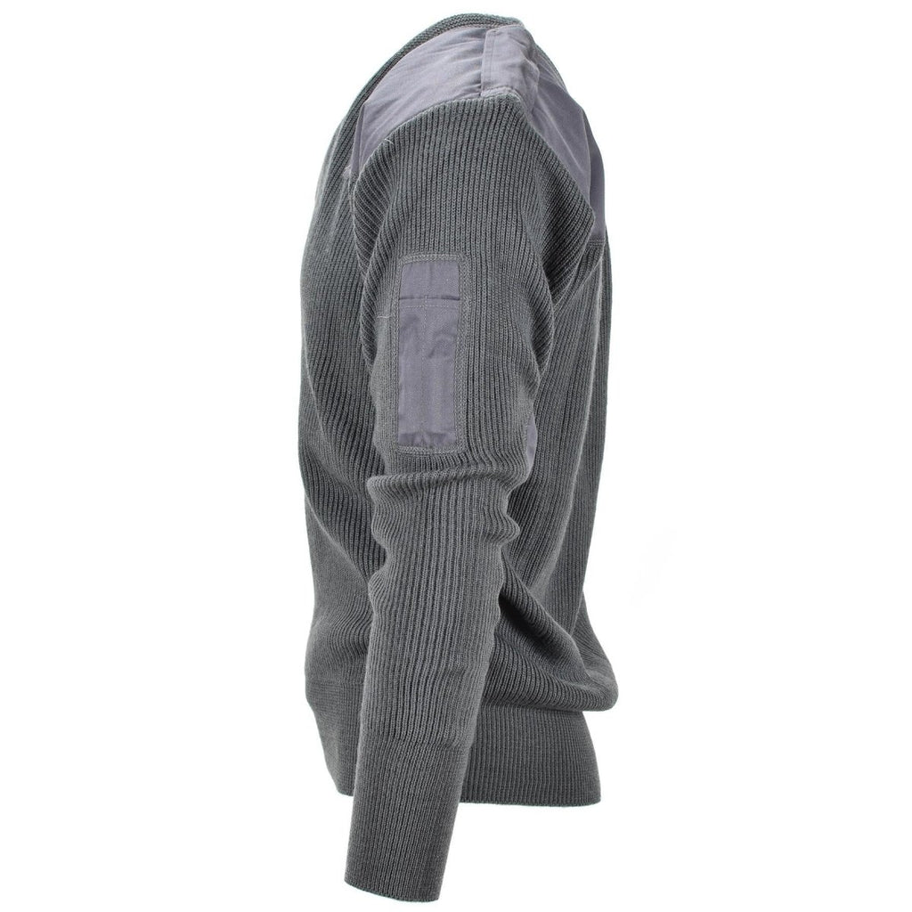 Italiensk militärgrå ull Commando V-ringad tröja med förstärkta armbågar