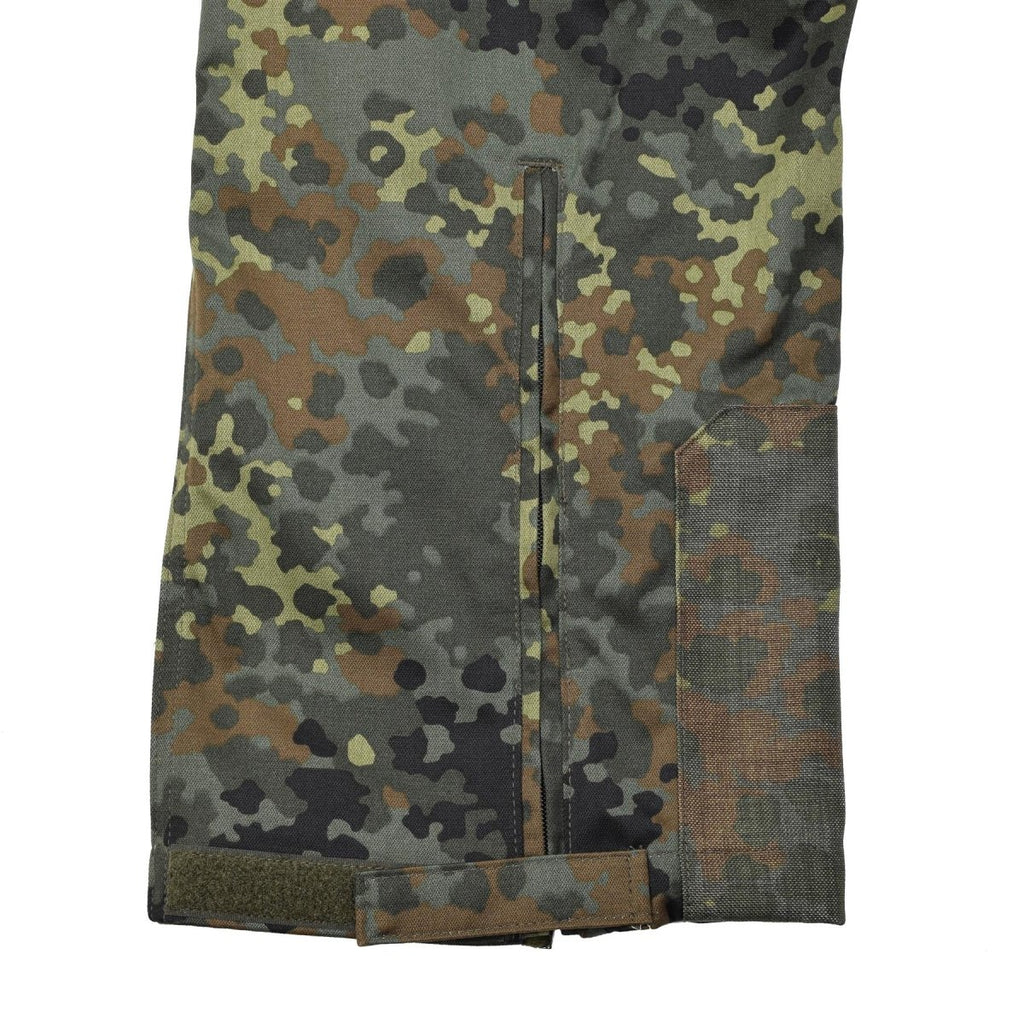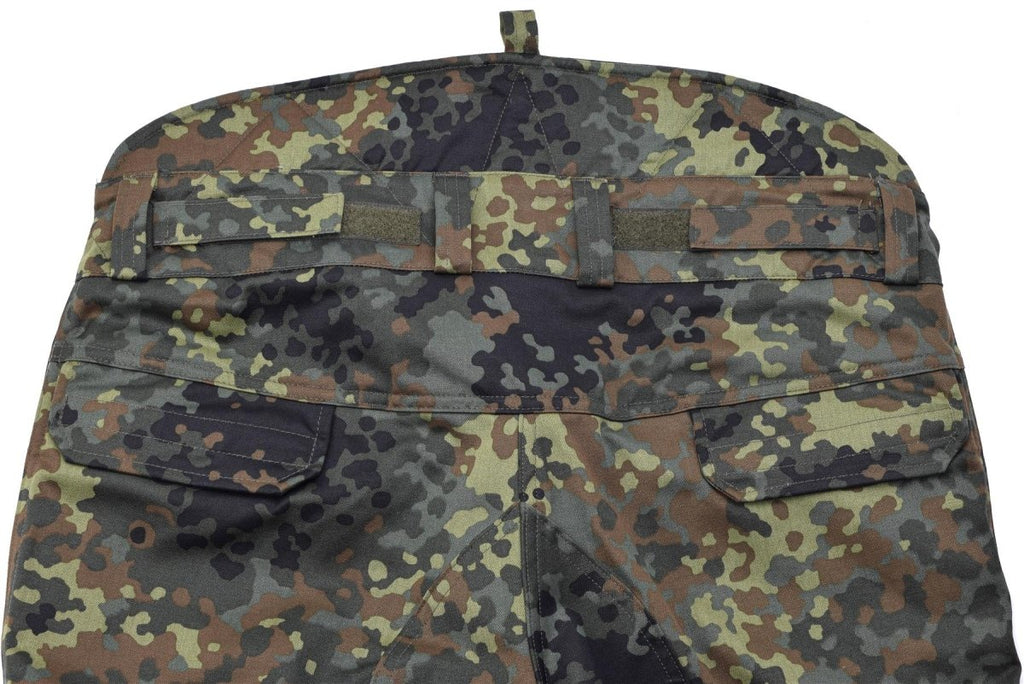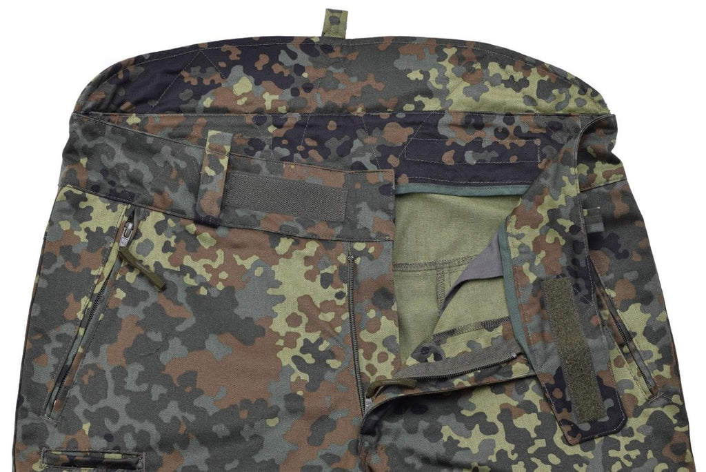 - Byxorna säkras med en dragkedja och visar upp ett distinkt flecktarn kamouflagemönster, vilket säkerställer optimal döljande i olika utomhusmiljöer. Dessa funktioner gör byxorna idealiska för både taktiska uppdrag och utomhusäventyr. Det hållbara ripstop-materialet tål tuffa förhållanden, vilket gör dem till ett pålitligt val för alla krävande aktiviteter.