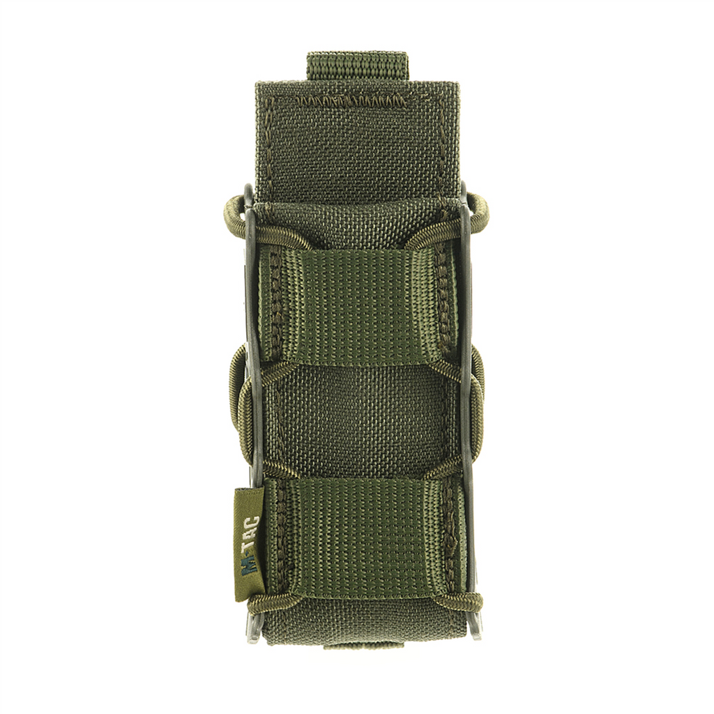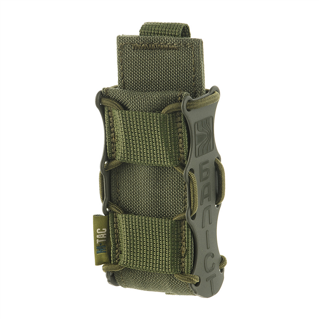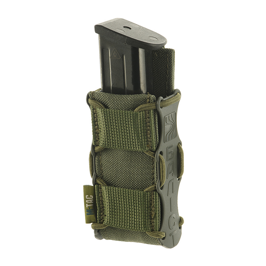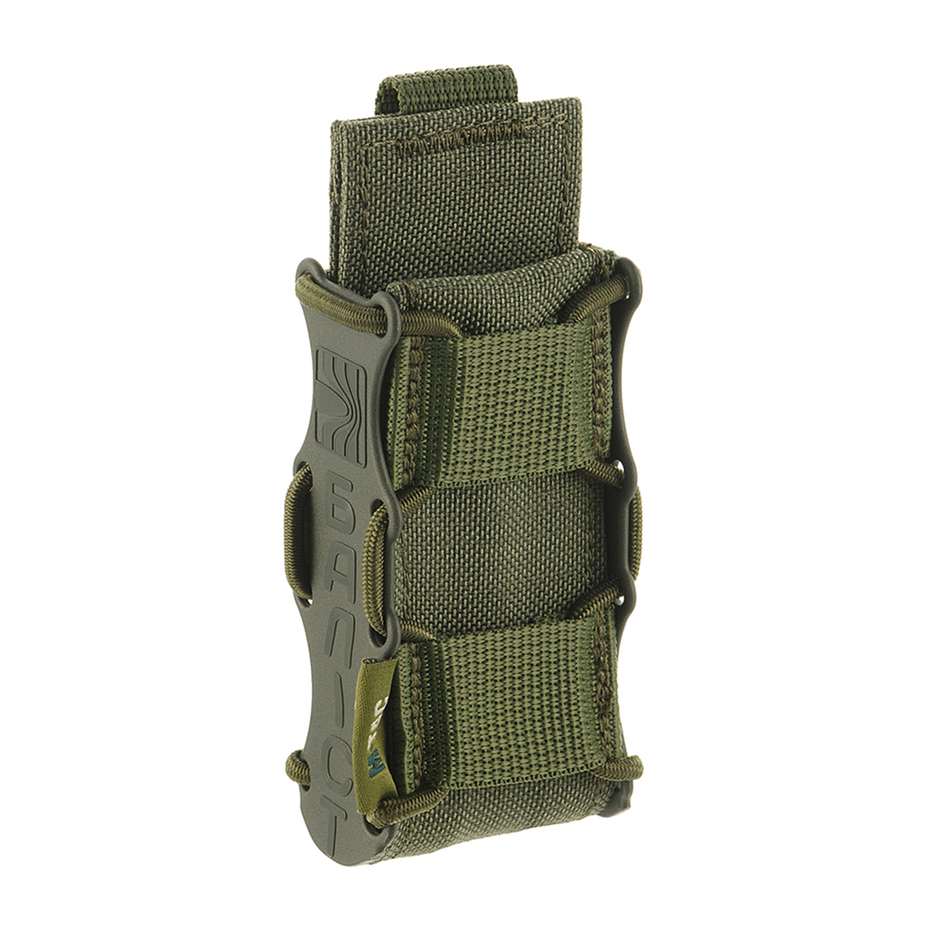 Påsen har ett MOLLE-fästesystem, vilket möjliggör säker montering på taktiska västar, plåtbärare, bälten eller ryggsäckar utrustade med MOLLE-band. Dess öppna toppdesign med elastisk retention säkerställer snabb och enkel åtkomst till magasinet samtidigt som det håller det säkert på plats under rörelse.