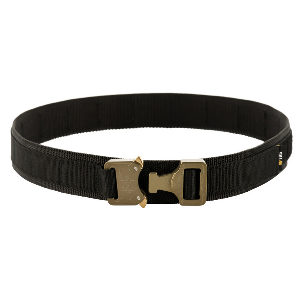 M-TAC Tactical Belt COBRA Aluminium Spänne Heavy Duty Justerbar Svart är ett hållbart och pålitligt bälte designat för taktisk användning, utomhusaktiviteter och vardagligt slitage. Utrustad med ett starkt COBRA aluminiumspänne ger det ett säkert låssystem med snabbkopplingsfunktion och hög lastkapacitet.