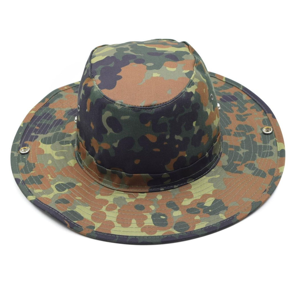 - Dessutom säkerställer dess robusta design hållbarhet, vilket gör den lämplig för alla utomhusaktiviteter. Flecktarn Camo lägger till en touch av militärinspirerad stil och smälter sömlöst med naturen. Oavsett om du utforskar vildmarken eller njuter av en picknick i parken, håller den här hatten dig skyddad och ser bra ut.