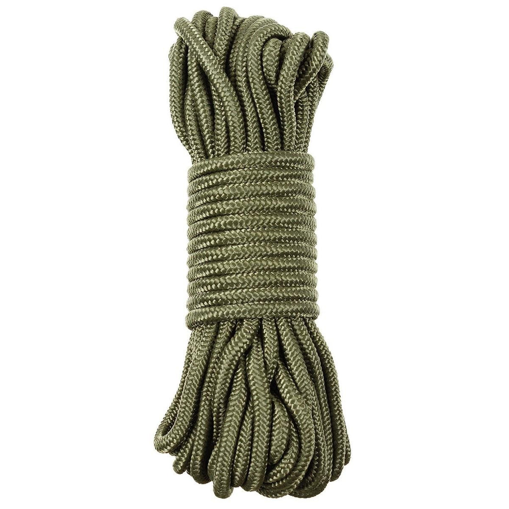 MFH Utility Rope är en hållbar och mångsidig polypropenlina designad för utomhusbruk, camping och allmänt bruk. Finns i 5 mm och 7 mm tjocklek och 15 meter i längd, detta rep är lätt, väderbeständigt och snabbtorkande, vilket gör det idealiskt för ett brett utbud av utomhusuppgifter. Den starka flätade strukturen säkerställer tillförlitlighet för att fästa tält, utrustning eller presenningar, och den kan också användas för hantverk, reparationer eller överlevnadsändamål. Observera: detta är inte ett klätterrep. Dess OD-gröna färg ger ett taktiskt och naturligt utseende som lämpar sig för utomhusaktiviteter och aktiviteter i militärstil.