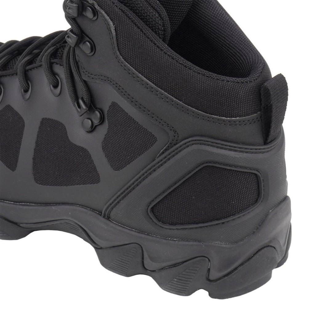 - Stående på 5,5 tum, dessa taktiska stövlar för män i svart erbjuder överlägsen komfort och andningsförmåga. Även under långvarig användning under utmanande förhållanden. De är designade för att uthärda högintensiva aktiviteter som längre vandringar och campingturer. Med en säker snörstängning för en åtsittande passform och förbättrat fotledsstöd för stabilitet under dynamiska rörelser, vilket garanterar självförtroende och säkerhet i oländig terräng.