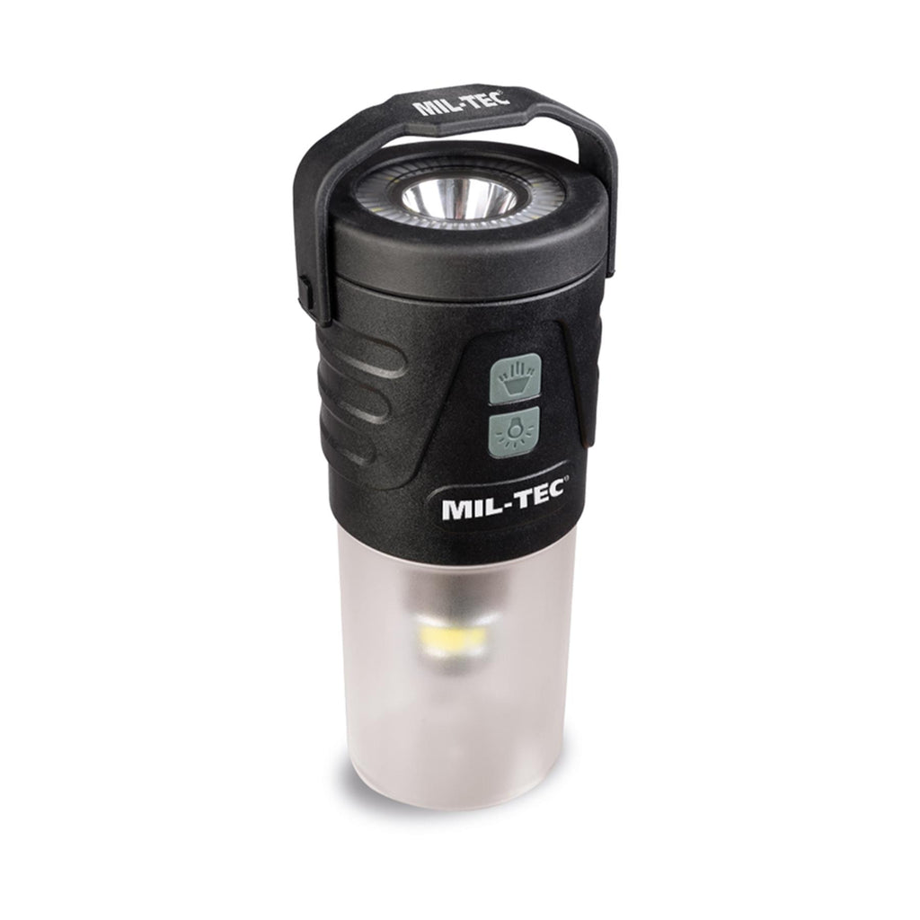 Denna MIL-TEC uppladdningsbara campinglykta och ficklampa är en mångsidig belysningslösning för utomhusaktiviteter, camping, nödsituationer och dagligt bruk. Den kombinerar en lykta och en ficklampa i en kompakt enhet med flera ljuslägen.