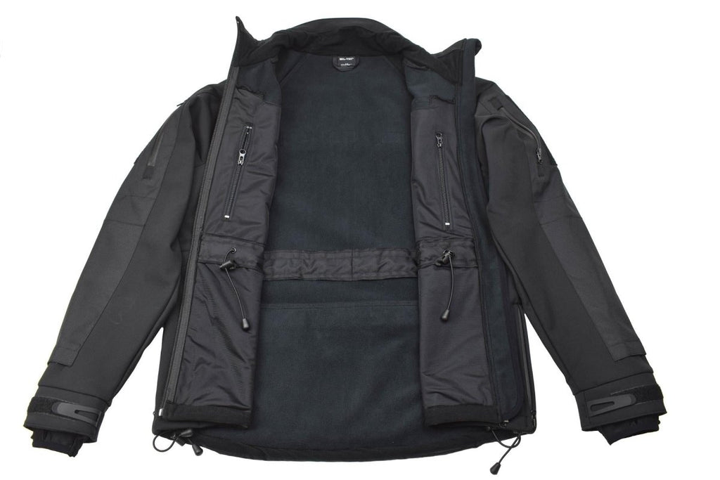 - Denna jacka är tillverkad av softshell-material, vilket säkerställer flexibilitet och komfort. Designad med militära specifikationer, ger den skydd mot väder och vind samtidigt som den tillåter enkel rörelse. Den eleganta svarta färgen erbjuder mångsidighet, vilket gör den lämplig för en mängd olika tillfällen.