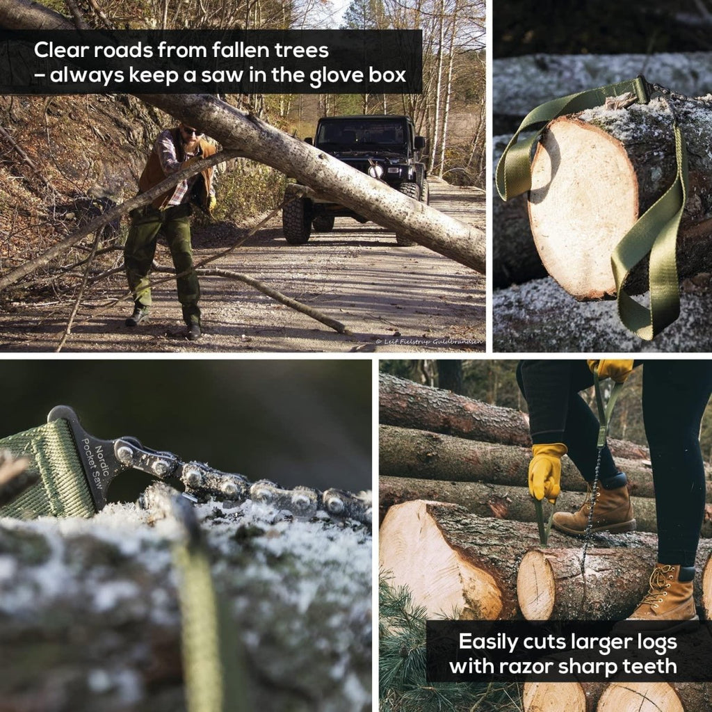 - Fickmotorsågens kompakta storlek gör den lätt att packa. Den tar minimalt med utrymme i din ryggsäck samtidigt som den ger kraftfull prestanda när det behövs. Kraftiga nylonhandtag ger ett bekvämt och säkert grepp, även i våta förhållanden. Detta säkerställer att du kan hantera sågen med lätthet under långa kapsessioner. Med Nordic Pocket Saw har du alltid rätt verktyg för utomhusjobb.