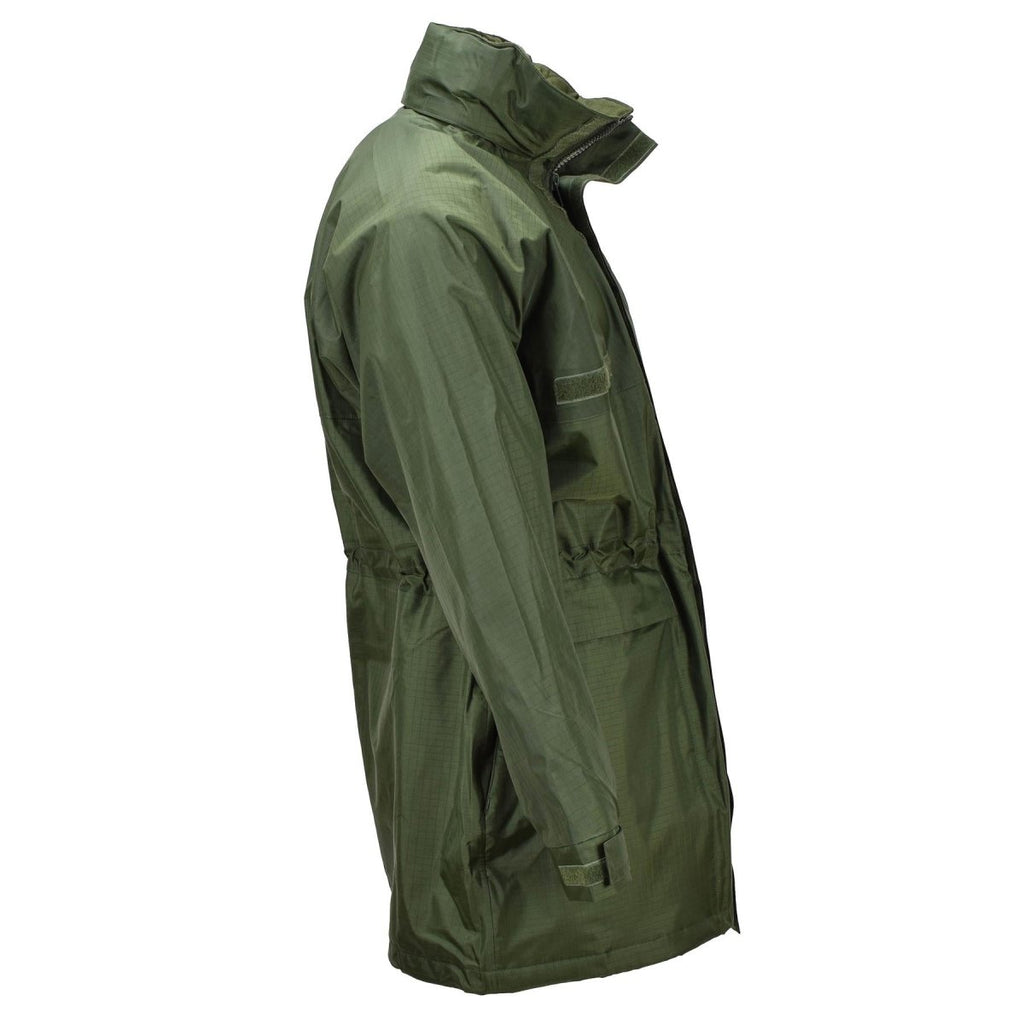 Den här kappan i olivfärg är både klassisk och funktionell, perfekt för alla utomhusäventyr. Låt inte vädret överraska dig – håll dig förberedd och skyddad med vår militära regnjacka med huva.