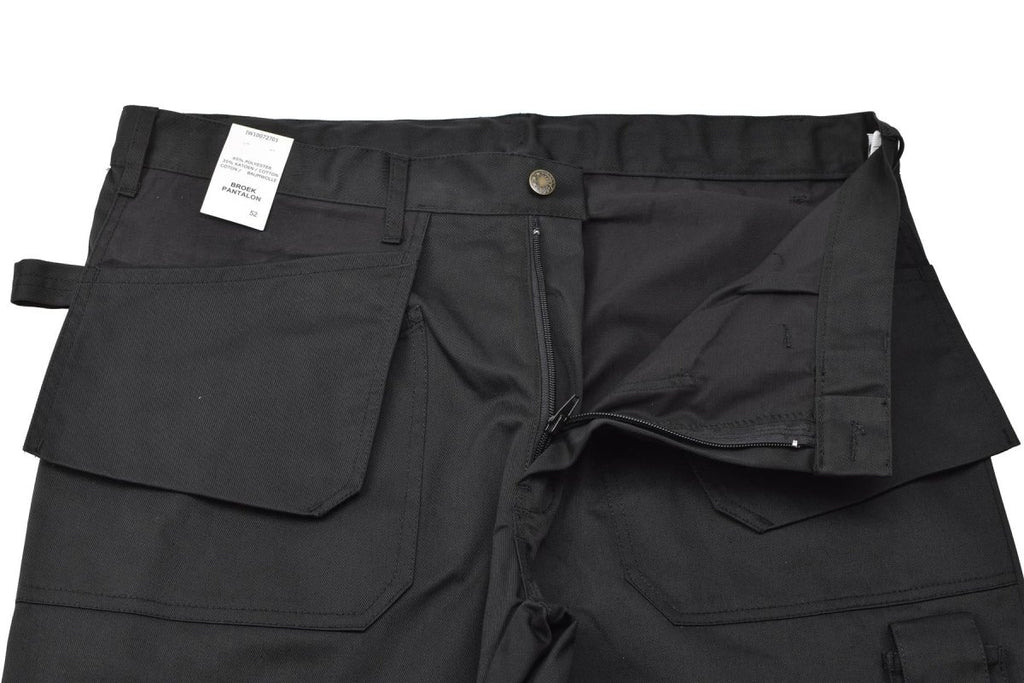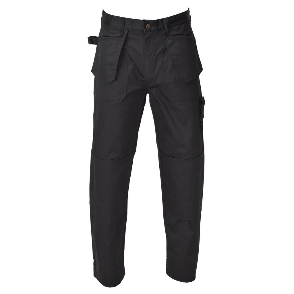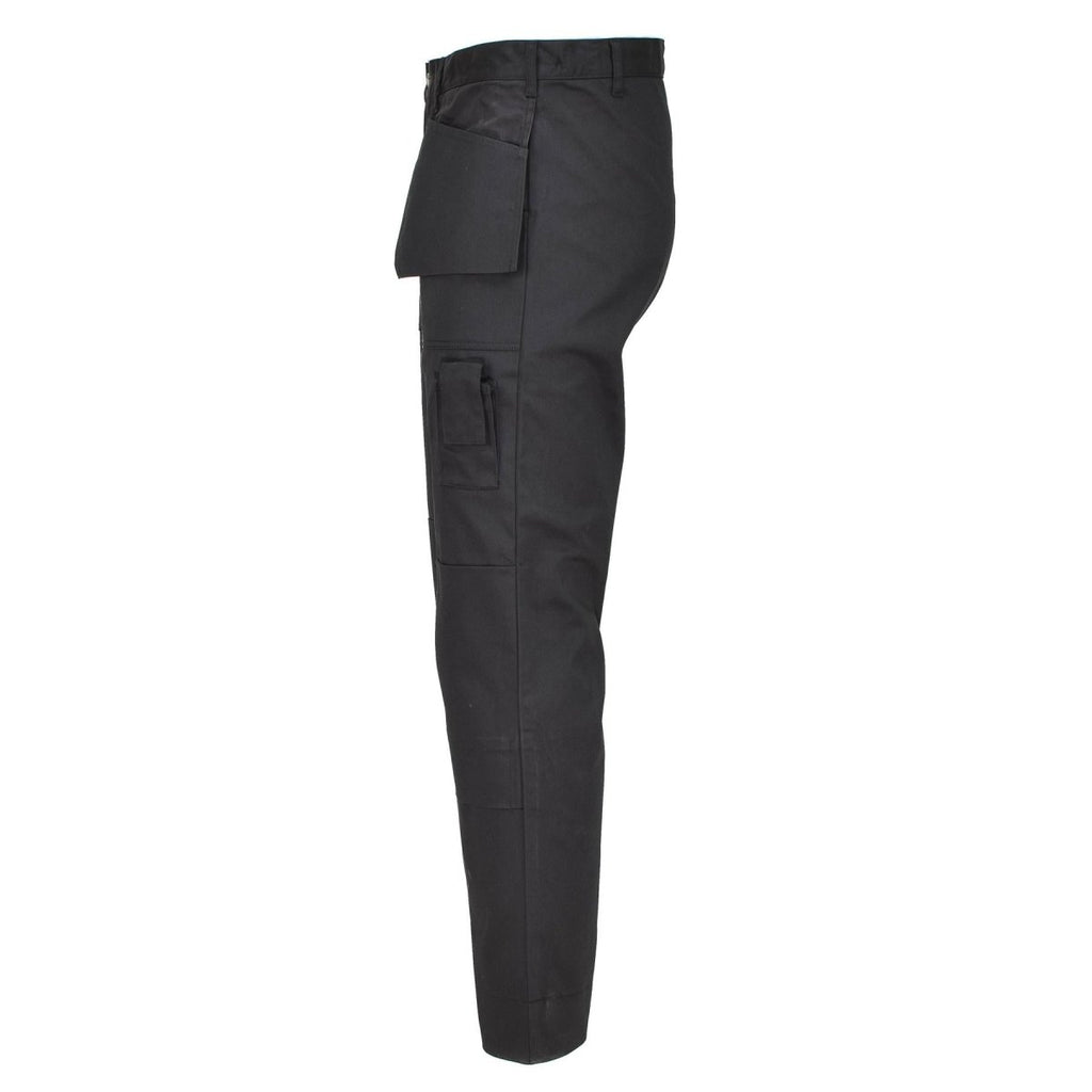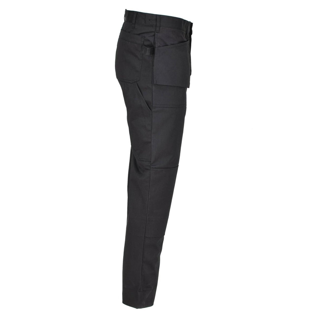 - I klassisk svart passar dessa lösa arbetsbyxor militära behov och döljer utan ansträngning fläckar och smuts. Tillverkade av slitstark bomull eller en bomullsblandning, de klarar av militära plikter.