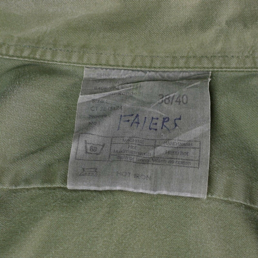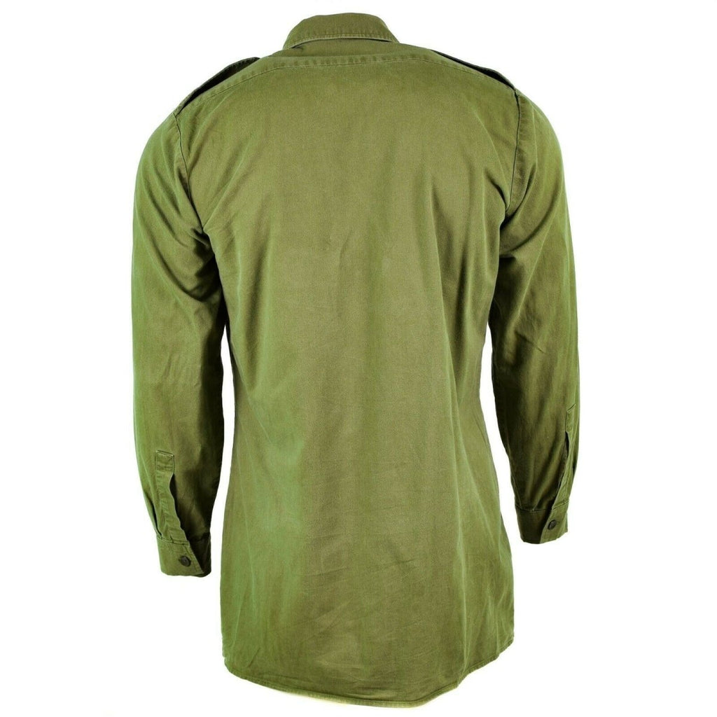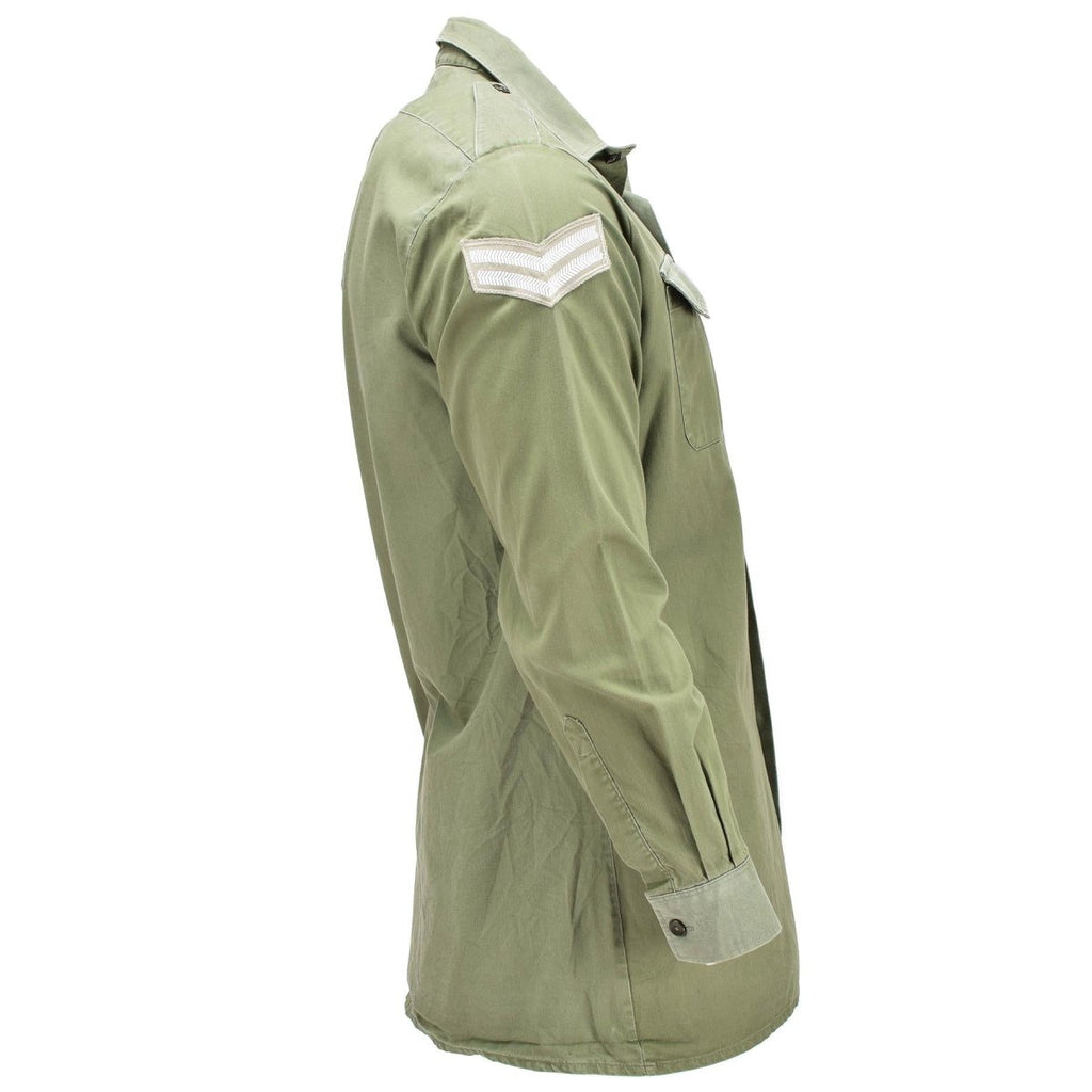 Vi presenterar den autentiska brittiska formella militärskjortan i oliv, ett tidlöst plagg för högtidliga tillfällen. Med sina långa ärmar, manschetter med knappar, epauletter och bröstfickor utstrålar denna skjorta elegans.