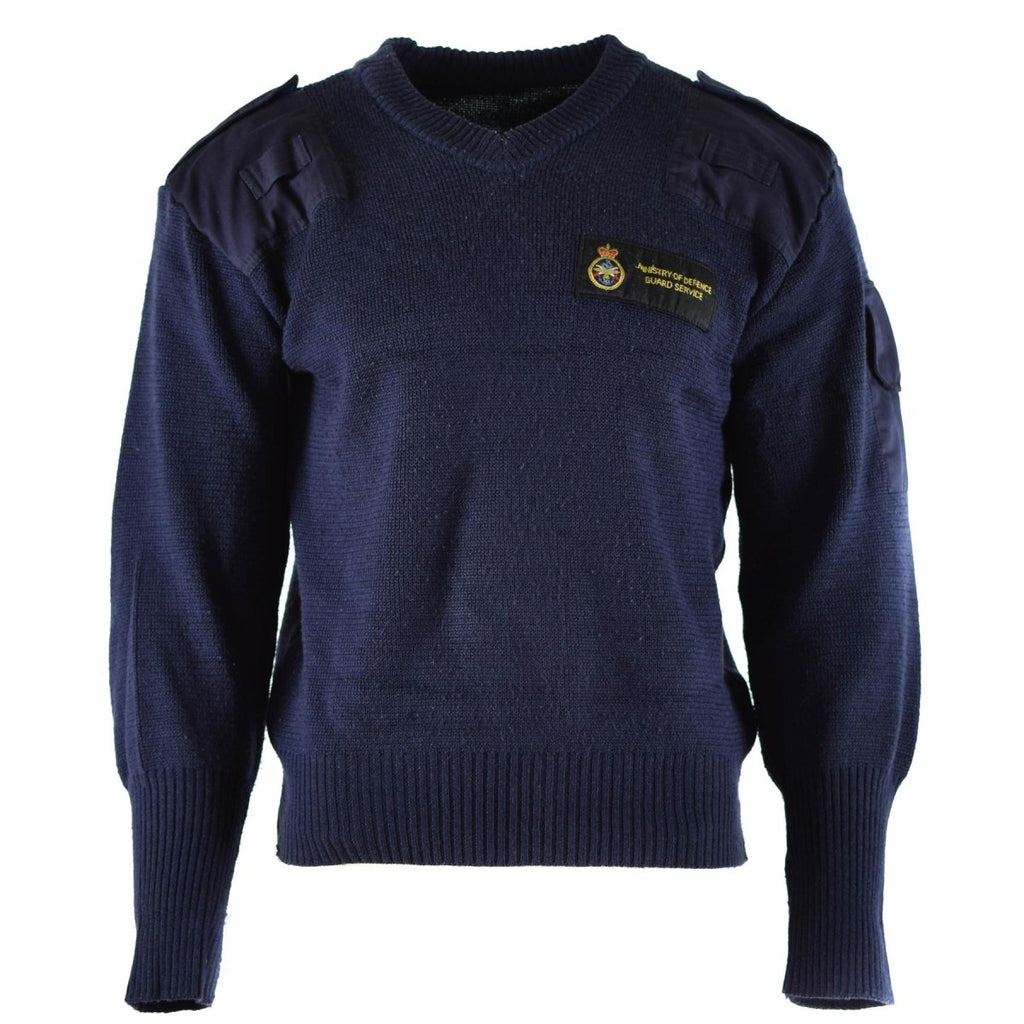 Med sitt solida mönster och pålitliga konstruktion är den solida blå tröjan perfekt för både militärt och civilt bruk. Det ger värme, komfort och ett professionellt utseende, vilket gör det till ett värdefullt tillskott till din garderob. Oavsett om det är för arbete eller fritid, den äkta British Defence Service Blue V-Neck Wool Commando Jumper erbjuder allt du behöver.