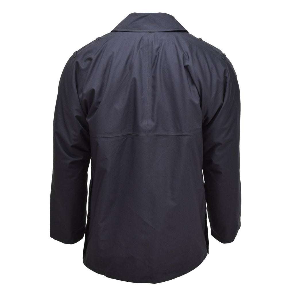 - Den här jackan är tillverkad av högkvalitativa material och är både slitstark och pålitlig. Den enfärgade svarta färgen är standard för utomhusutrustning och hjälper till med synlighet i svagt ljus. Dess foder ger extra värme, vilket gör den lämplig för svalare väder. Som en äkta militär överskottsvara kan du lita på dess utmärkta skick.