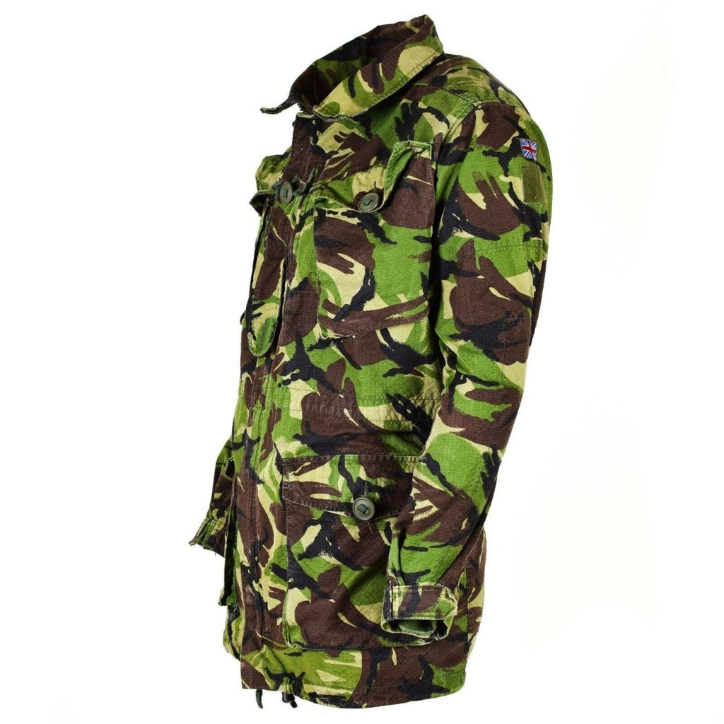 - Dessutom sticker den brittiska smockjackan ut med sitt distinkta DPM (Disruptive Pattern Material) kamouflage. DPM-mönstret integrerar nyanser av brunt, grönt och svart, arrangerade i en fläckig, oregelbunden design. Detta kamouflage blandar sig effektivt med naturlig terräng, minskar sikten och förbättrar döljandet.