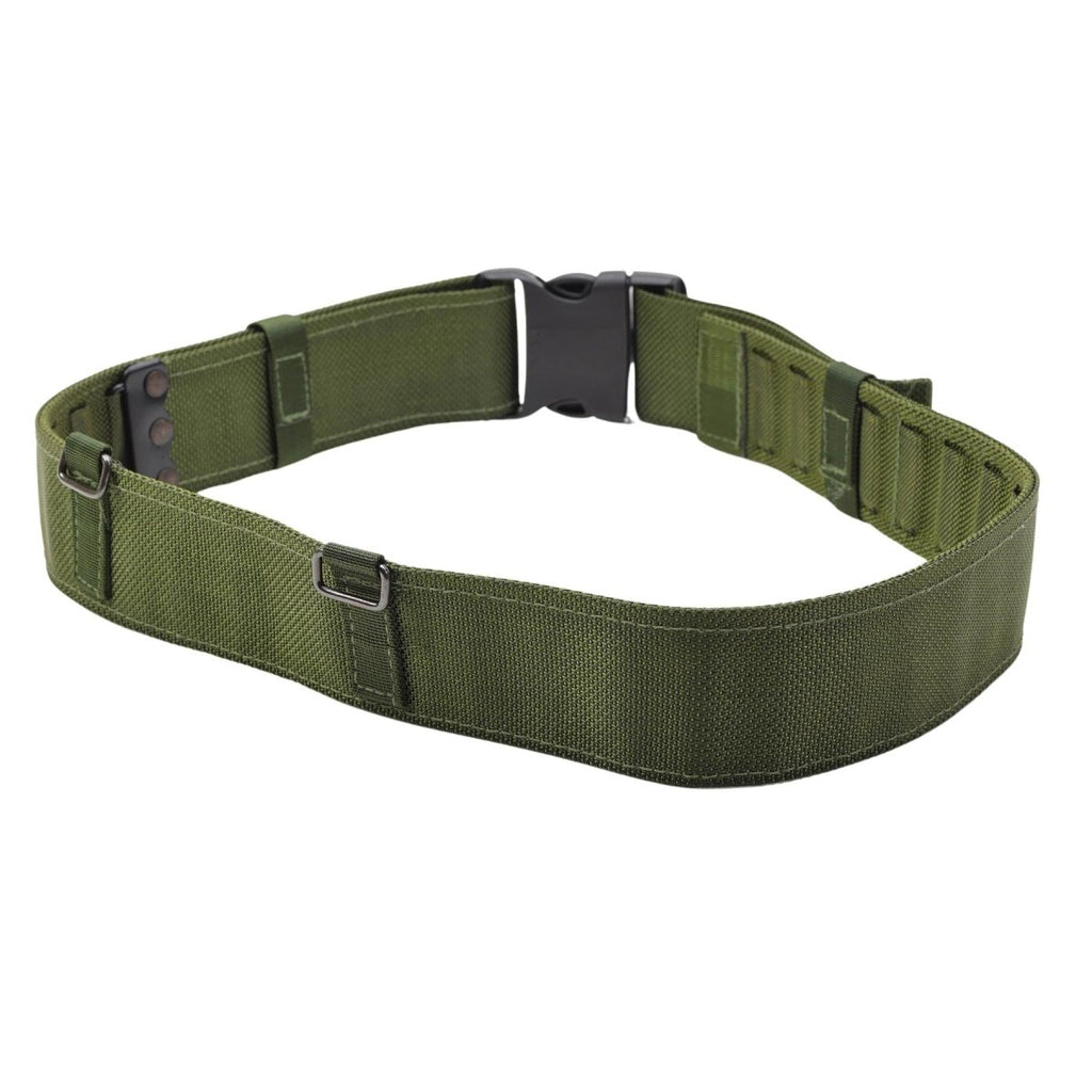 - Den olivfärgade färgen ger detta taktiska canvasbälte en robust, militärinspirerad look, vilket gör det idealiskt för friluftsentusiaster och militär personal. Detta bälte fungerar både som ett praktiskt verktyg och en snygg accessoar. Dess hållbarhet gör den perfekt för tuffa förhållanden, där slitage snabbt skulle skada mindre bälten.