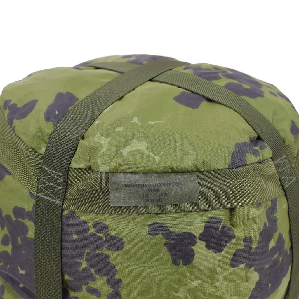 - Den ursprungliga danska militärkompressionsväskan M84 Camo PU-belagd lättviktsväska är inte bara praktisk utan utstrålar också en känsla av äventyr och stil. Dess kamouflagetryck hyllar dess militära ursprung, medan det högkvalitativa syntettyget säkerställer hållbarhet och livslängd.
