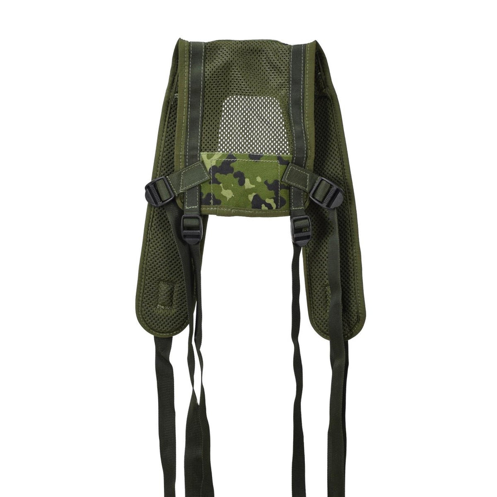- Designad med ett original dansk militär M96 kamouflagemönster, erbjuder denna sele en blandning av taktisk prestanda och robust stil. Oavsett om det gäller utomhusäventyr, militär träning eller dagligt bruk, garanterar dessa band en säker och pålitlig passform.