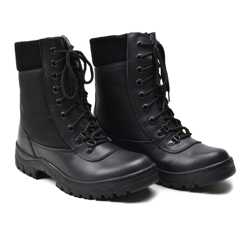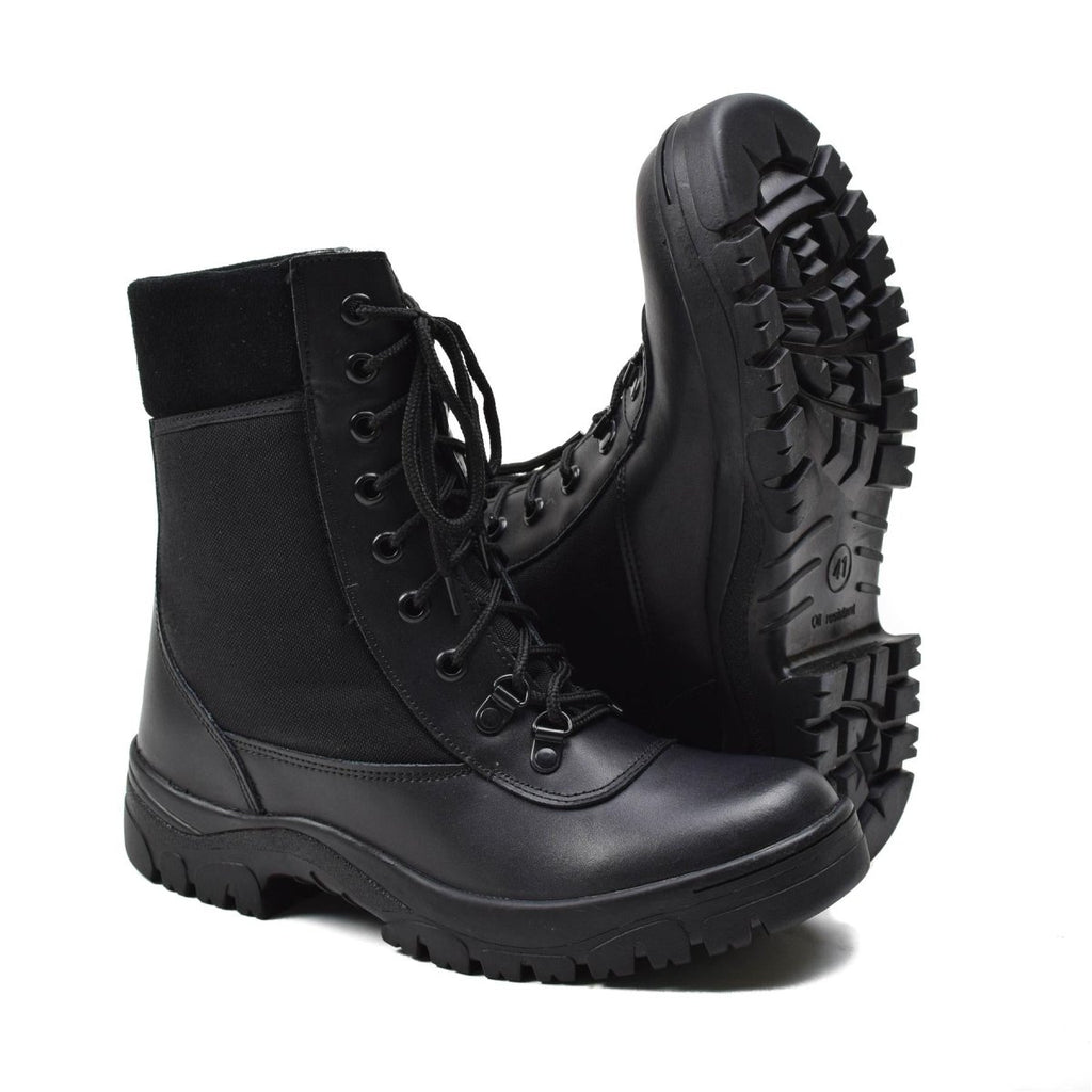 - Premium läderkonstruktion: Dessutom, gjorda av högkvalitativt svart läder, ger dessa stövlar ett polerat utseende samtidigt som de erbjuder den hållbarhet som behövs för militär användning. Därför är premiumlädret både andningsbart och lätt, vilket bidrar till övergripande komfort under långvarig användning.