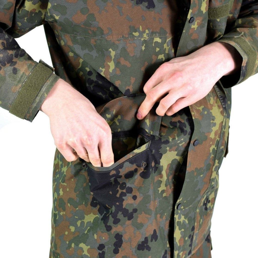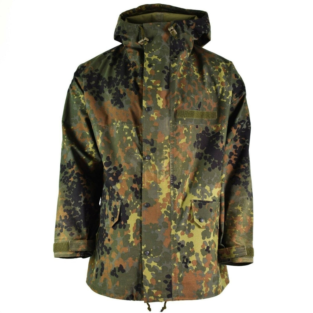 Flecktarn GoreTex-jacka är ett mångsidigt, pålitligt val av ytterkläder. Den förkroppsligar tysk militärteknik och garanterar långvarigt skydd för alla typer av utomhusmiljöer.