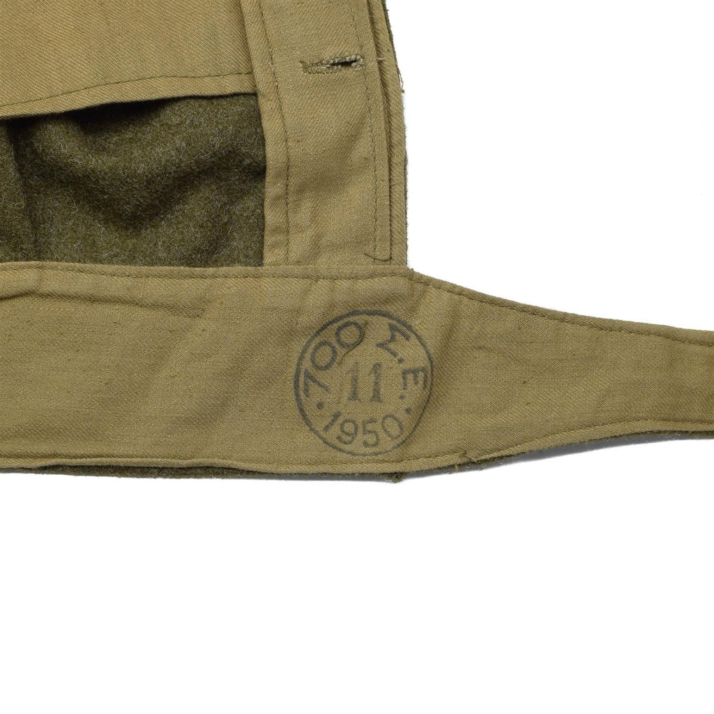 - Jackan har en klassisk krage och ärmslut, vilket ger sofistikering till sin militärinspirerade design. Den knäppta fronten möjliggör enkel stängning, medan den justerbara midjan ger en anpassningsbar passform. Du kan justera den efter dina önskemål för maximal komfort. Tillverkad 1950, denna jacka har en rik historia och ger vintagecharm till din garderob.