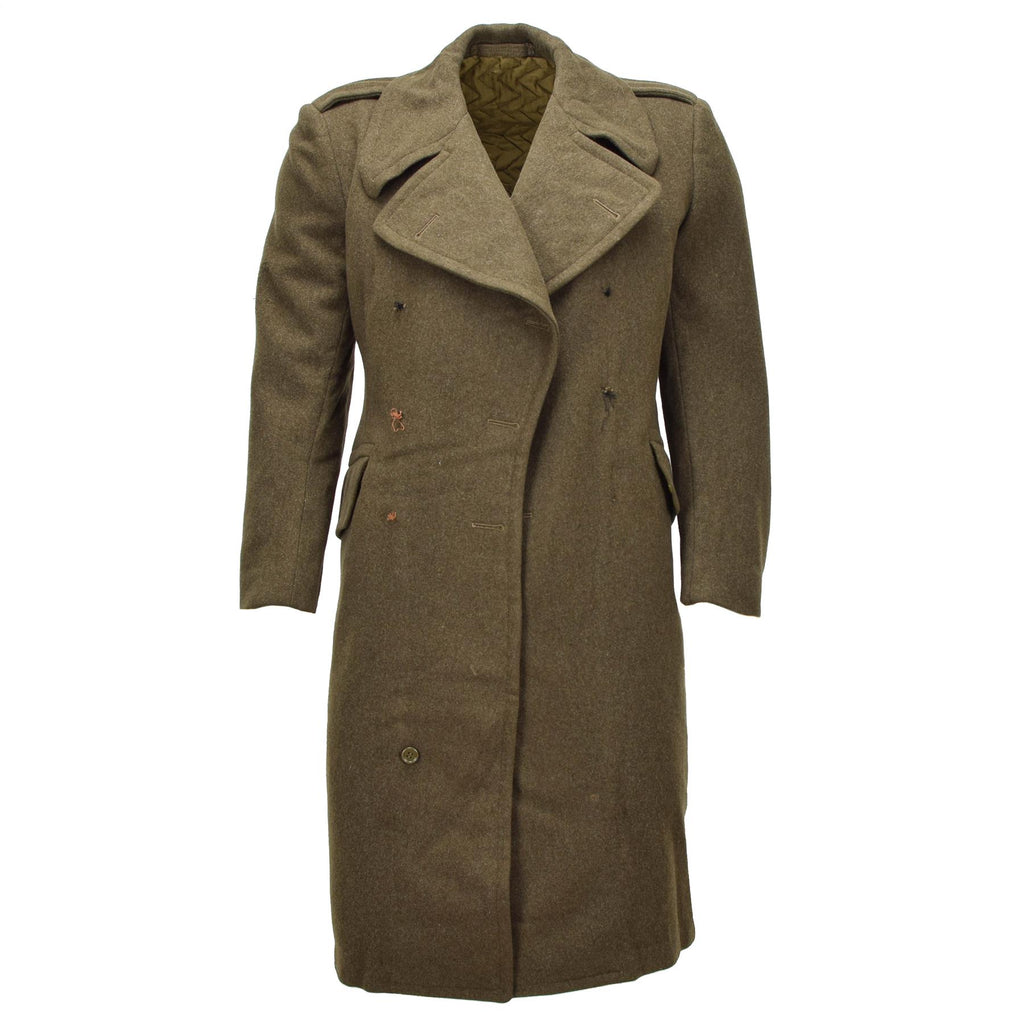 Äkta kanadensiska arméns ullöverrock från original militärt överskott. Denna kraftiga långa kappa designades för officerare och gjord av en tjock ullblandning för att säkerställa värme, hållbarhet och tidlös militär stil. Den har en dubbelknäppt front, axelepaletter, sidfickor och ett vadderat innerfoder för extra komfort i kallt väder. Den olivgröna färgen och det strukturerade snittet återspeglar det klassiska utseendet hos kanadensiska militäruniformer. Perfekt för samlare, reenactors, eller alla som uppskattar äkta armyyttterkläder.