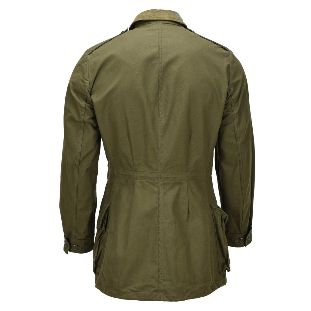 Äkta 1981 kanadensisk armé fältjacka från original militärt överskott. Denna slitstarka och praktiska jacka är designad för användning året runt och representerar det klassiska utseendet från den kanadensiska försvarsmakten. Tillverkad av en stark bomullsblandning, den erbjuder komfort, andningsförmåga och pålitligt skydd i olika väderförhållanden. Den har fyra stora fickor med knappar, justerbara dragsko i midjan och fållen, förstärkta armbågar och axelepauletter. Den olivgröna färgen och vintagedesignen från 1981 gör den idealisk för samlare, reenactors eller alla som värdesätter äkta militärutrustning.