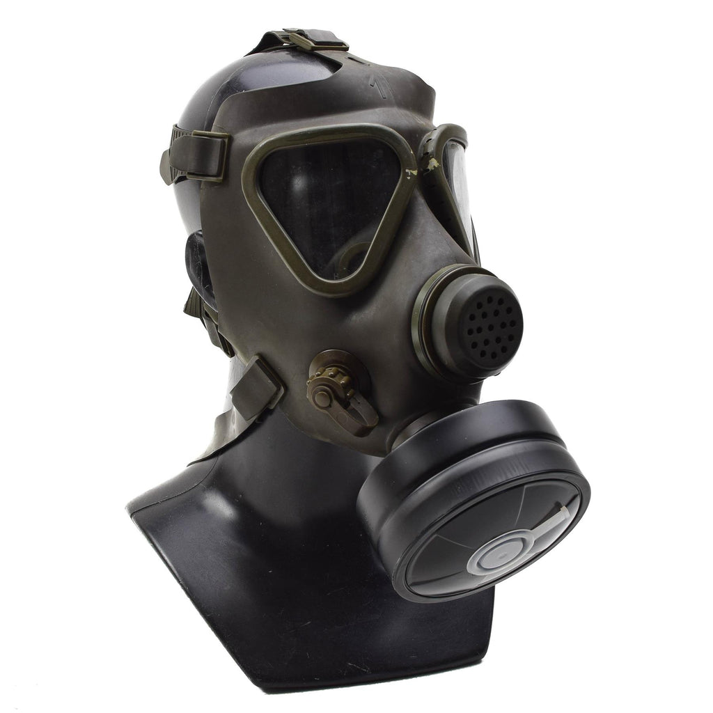 Dräger-maskerna är tillverkade för militärt bruk och är kända för sin hållbara konstruktion och distinkta design. Masken har en justerbar huvudsele för säker positionering och ett robust ansiktsmask som är typiskt för österrikisk militärutrustning. Den medföljande olivbärsväskan ger praktisk förvaring och bidrar till setets autentiska militära utseende.
