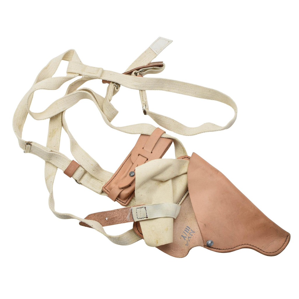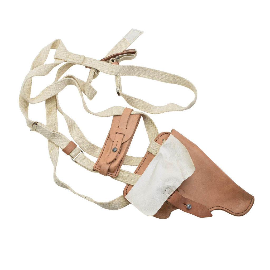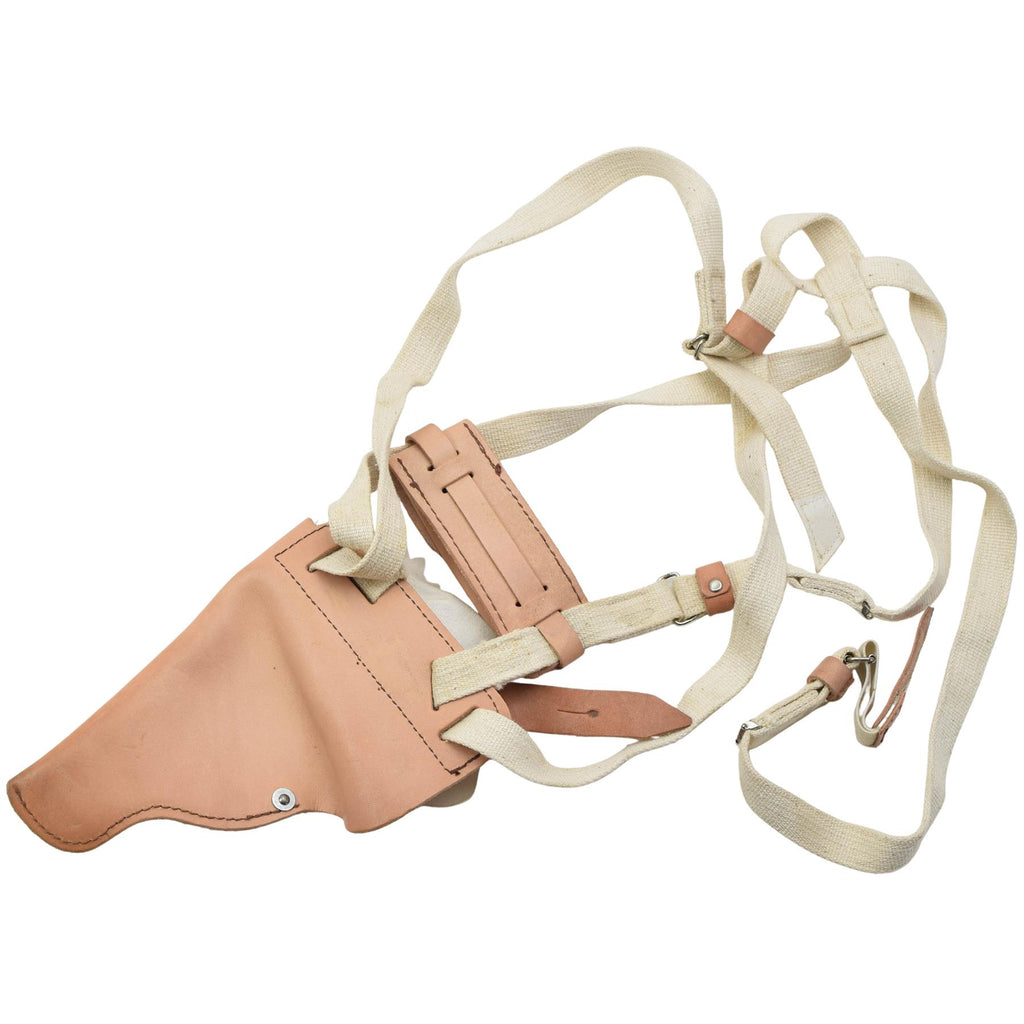 Detta original östtyska NVA M74 axelhölster är ett autentiskt militärt föremål som används av de tidigare DDR-väpnade styrkorna. Designad för bekväm och säker bärning, gör den att pistolen kan bäras under armen, vilket gör den lämplig för tjänstgöring, fältanvändning eller insamlingsändamål.