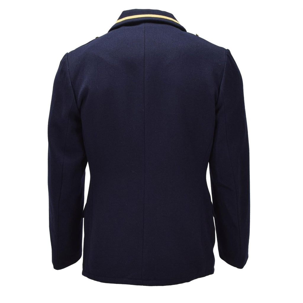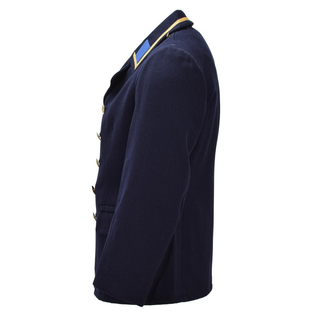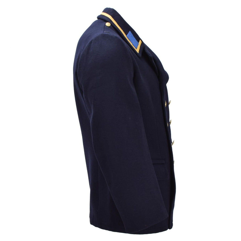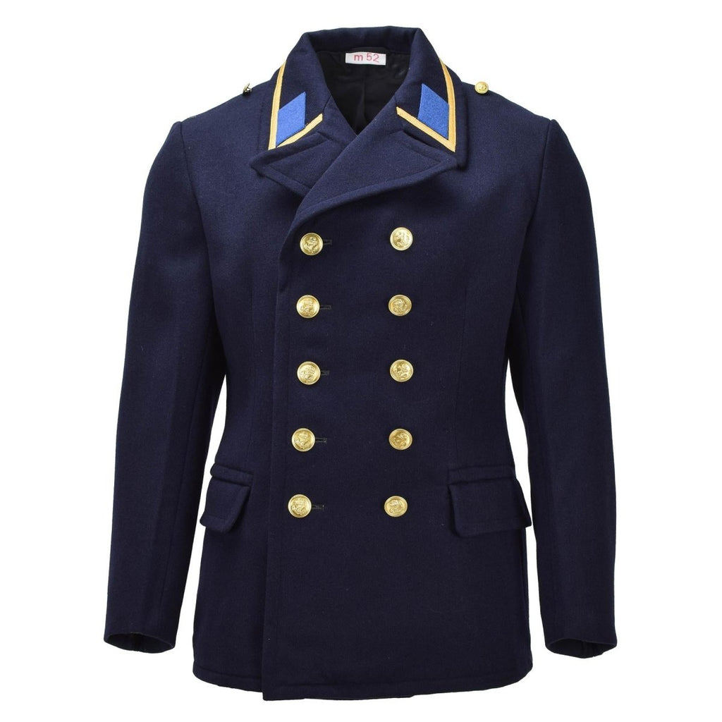 Den stora kappan är gjord i en klassisk mörkblå färg och har en traditionell dubbelknäppt front med metallknappar, strukturerade axlar och ett långt snitt designat för att ge värme och skydd i kallt väder. Det tunga yttertyget och formella militära skräddarsydda gör den lämplig för paradbruk, servicekläder eller ceremoniella tillfällen.