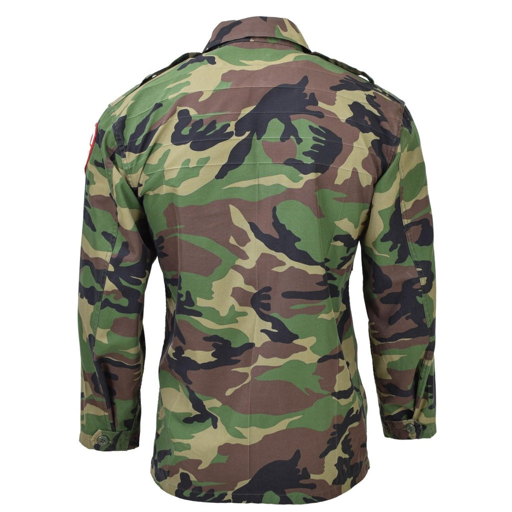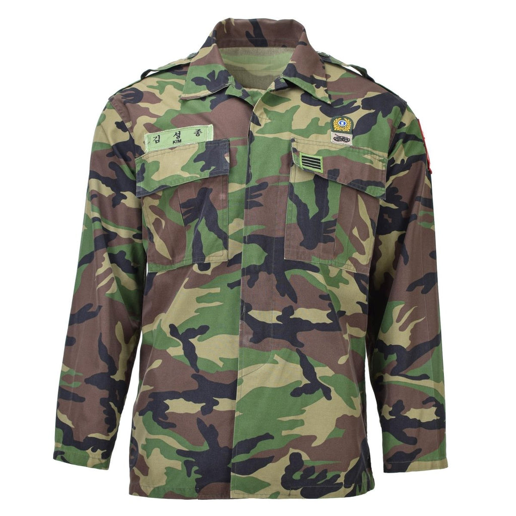 De korea arméskjortorna som visas är ett slitstarkt bomullsplagg med ett distinkt grönt och svart mönster för effektiv utomhusdöljning. Specifikt är det M90 woodland camo combat field variant av den ursprungliga sydkoreanska militära taktiska tröjan.