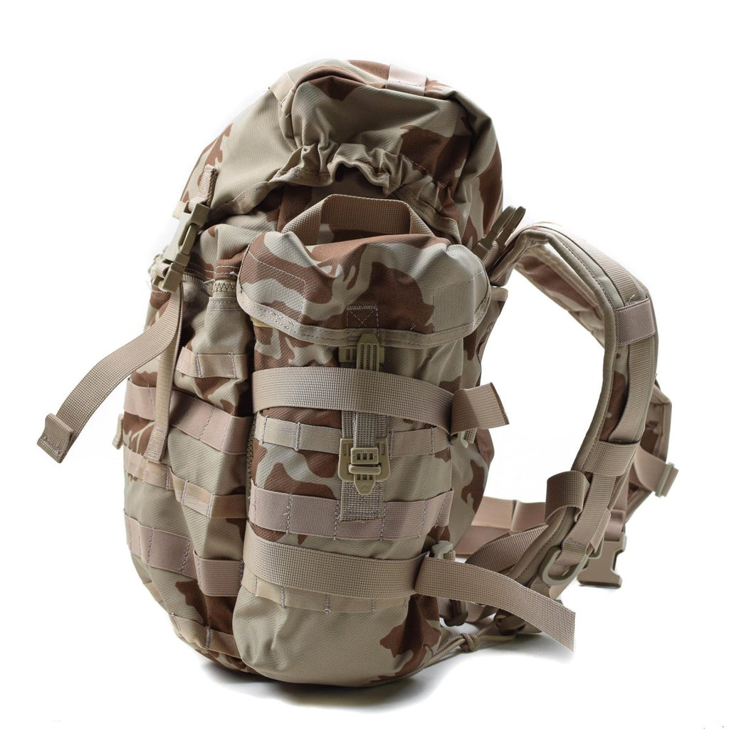 - Ökenkamouflagedesignen hjälper dig att smälta in i din omgivning, vilket gör ryggsäcken idealisk för uppdrag eller utomhusäventyr. Med sin stora kapacitet och praktiska funktioner säkerställer denna ryggsäck att du håller dig väl förberedd för alla situationer. Dess robusta konstruktion och effektiva design gör den till en pålitlig följeslagare i fält.