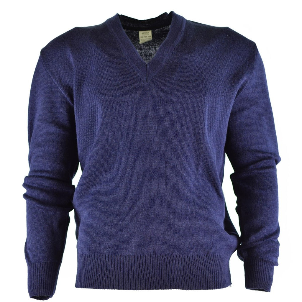 Den militära överskottsulltröjan är ett sant exempel på kvalitet och hållbarhet. Denna ursprungliga tjeckiska arméblå tröja med V-ringad ull kombinerar komfort med funktionalitet och erbjuder ett pålitligt alternativ för kallare väder.