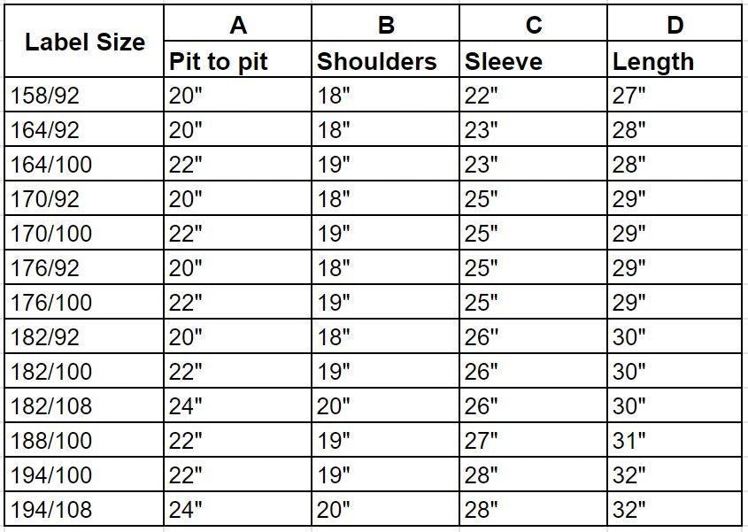 | 182/92 | 20" | 18" | 26'' | 30" |